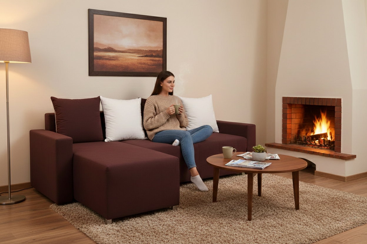 Γωνιακός καναπές Odette-Καφέ σκούρο