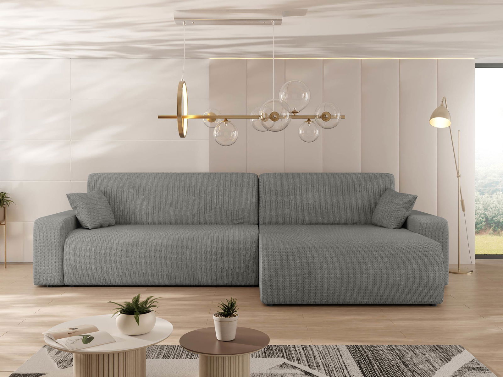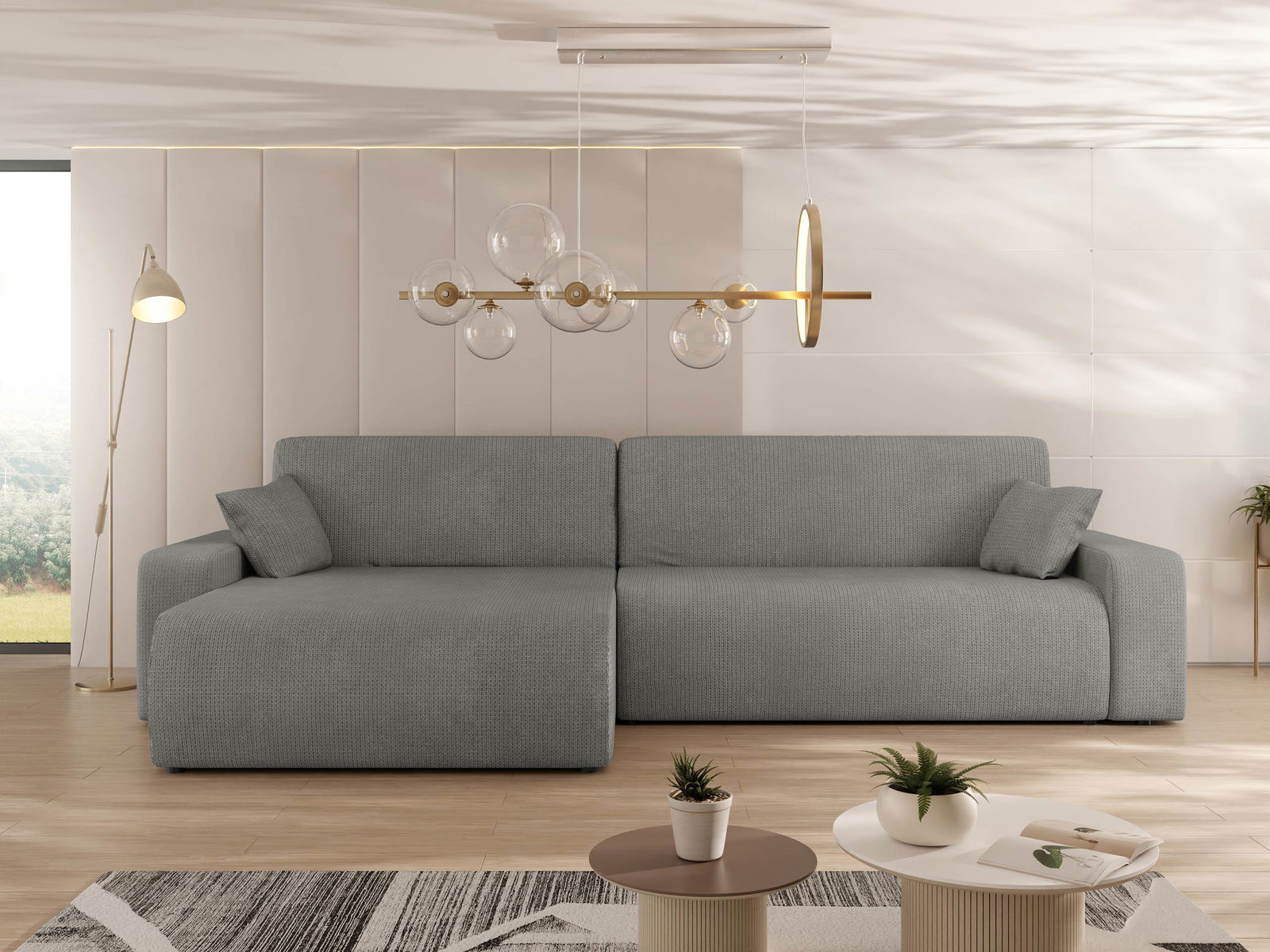 Γωνιακός καναπές Piano-Gkri Skouro