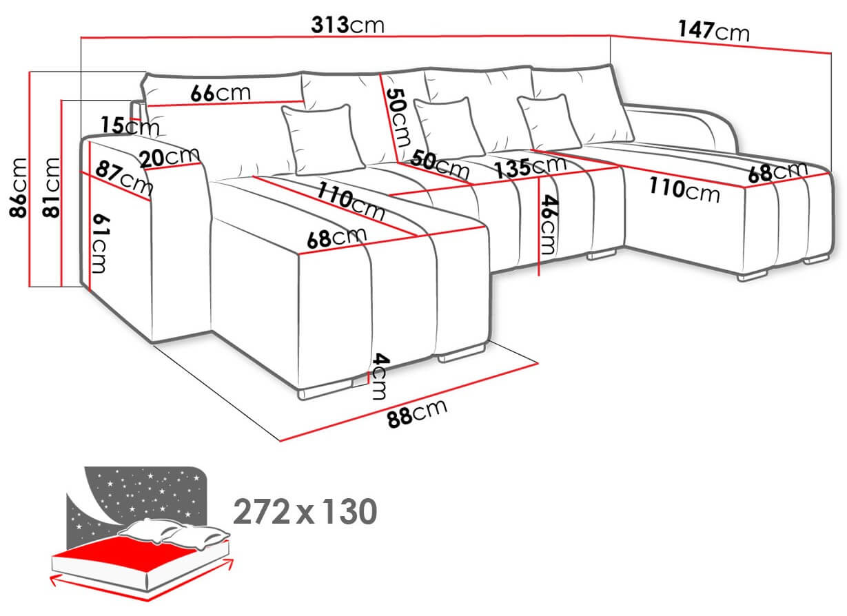 Γωνιακός καναπές Pufetto U μοντέρνου και κομψού σχεδιασμού που θα ταιριάξει εύκολα σε κάθε στυλ διακόσμησης. Ιδιαίτερα πρακτικός χάρη στον αποθηκευτικό χώρο που διαθέτει, διευκολύνοντας έτσι την οργάνωση και την αποθήκευση κλινοσκεπασμάτων. Η λειτουργία κρεβατιού απλά απογειώνει την αξία του καθώς η μαλακή επιφάνεια θα σας χαρίσει την ιδανική άνεση και πλήρης χαλάρωση κατά τις ώρες ύπνου και ξεκούρασης.