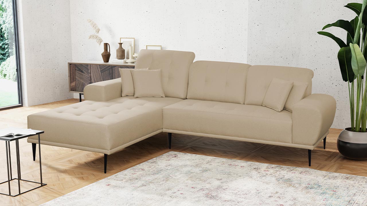 Γωνιακός καναπές Rapallo μοντέρνου σχεδιασμού διαθέσιμο με αριστερή ή δεξιά γωνία. Συνδυάστε τον με το πουφ της ίδιας σειράς για ενα ομοιόμορφο αποτέλεσμα.
