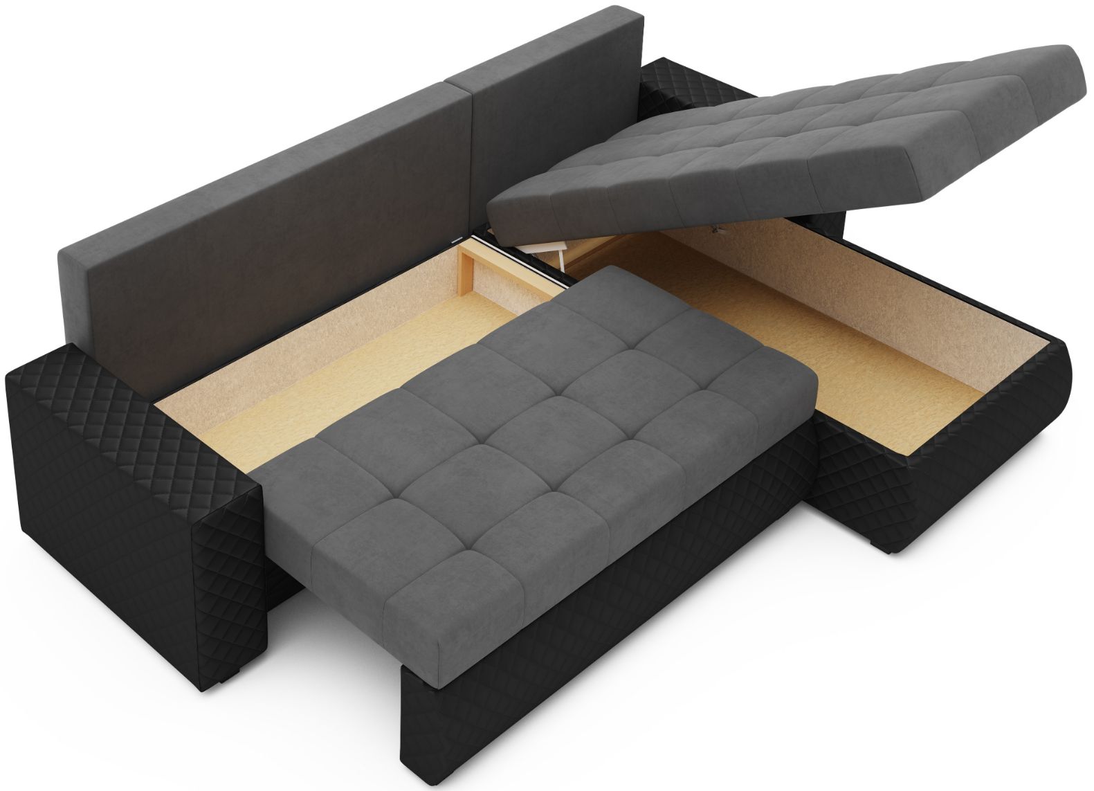 – 2 αποθηκευτικοί χώροι για τη μετατροπη κρεβάτι, το ένα διαθέτει μηχανισμό για εύκολο άνοιγμα