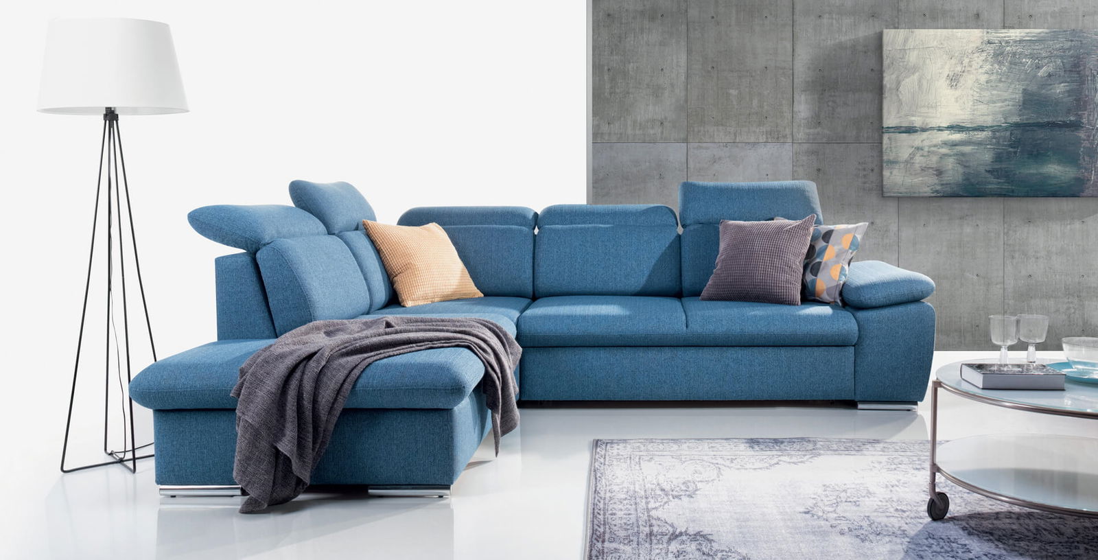 Γωνιακός καναπές Rossi μοντέρνου σχεδιασμού, ιδανικός για να αναβαθμίσει την διακόσμηση του σαλονιού σας. Εξαιρετικά πρακτική επιλογή για το καθιστικό σας που θα ικανοποιήσει την κάθε ανάγκη σας χαρίζοντας την ιδανική άνεση κατά την διάρκεια του ύπνου καθώς και ευρύχωρο αποθηκευτικό χώρο.