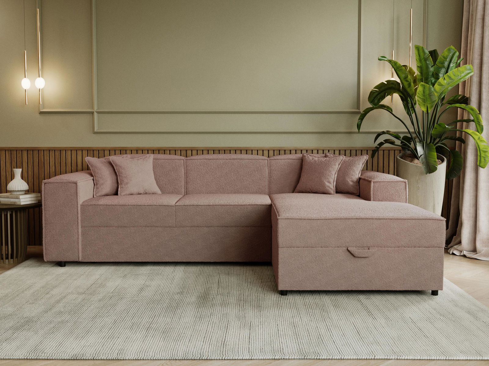 Ο γωνιακός καναπές Santos συνδυάζει άνεση και στυλ, με κομψή επένδυση boucle και διακοσμητικές ραφές που αναδεικνύουν τη γεωμετρική του γραμμή.