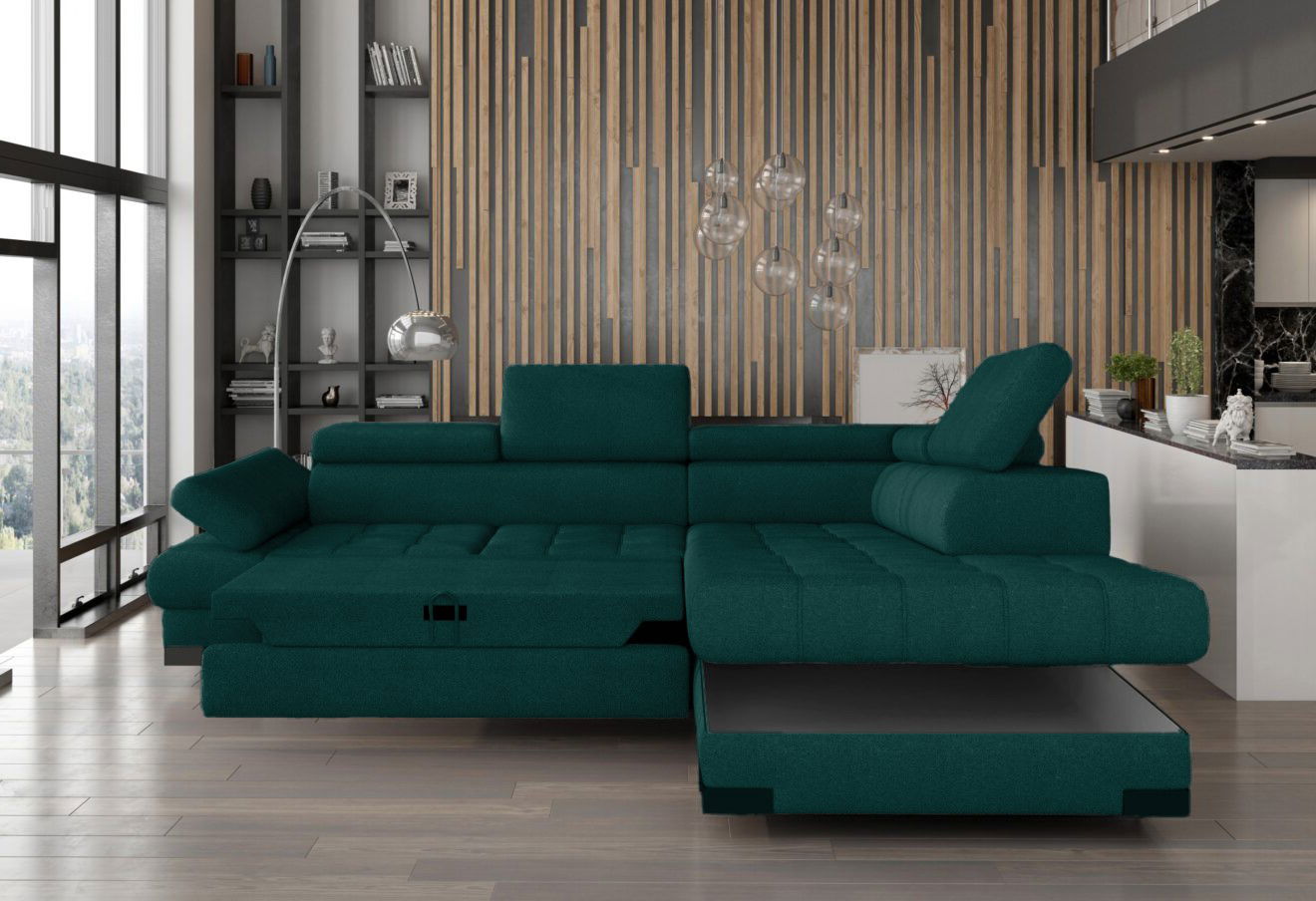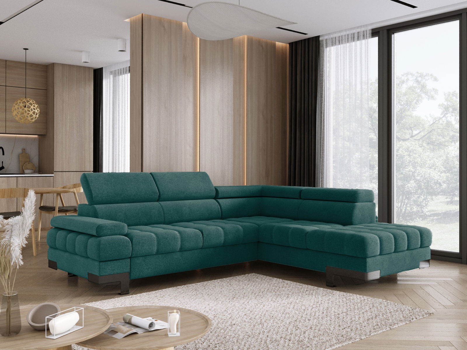 Γωνιακός καναπές Sapphire-Prasino-Δεξιά
