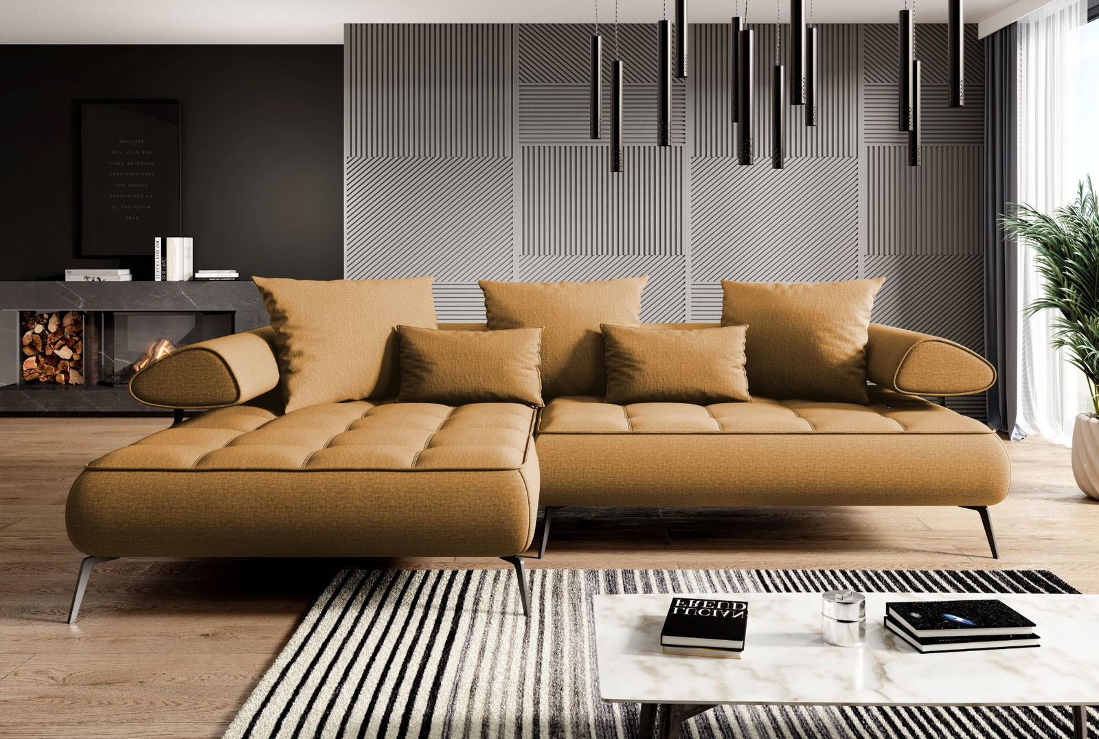 Γωνιακός καναπές Solido Mini-Moustardi-Αριστερή