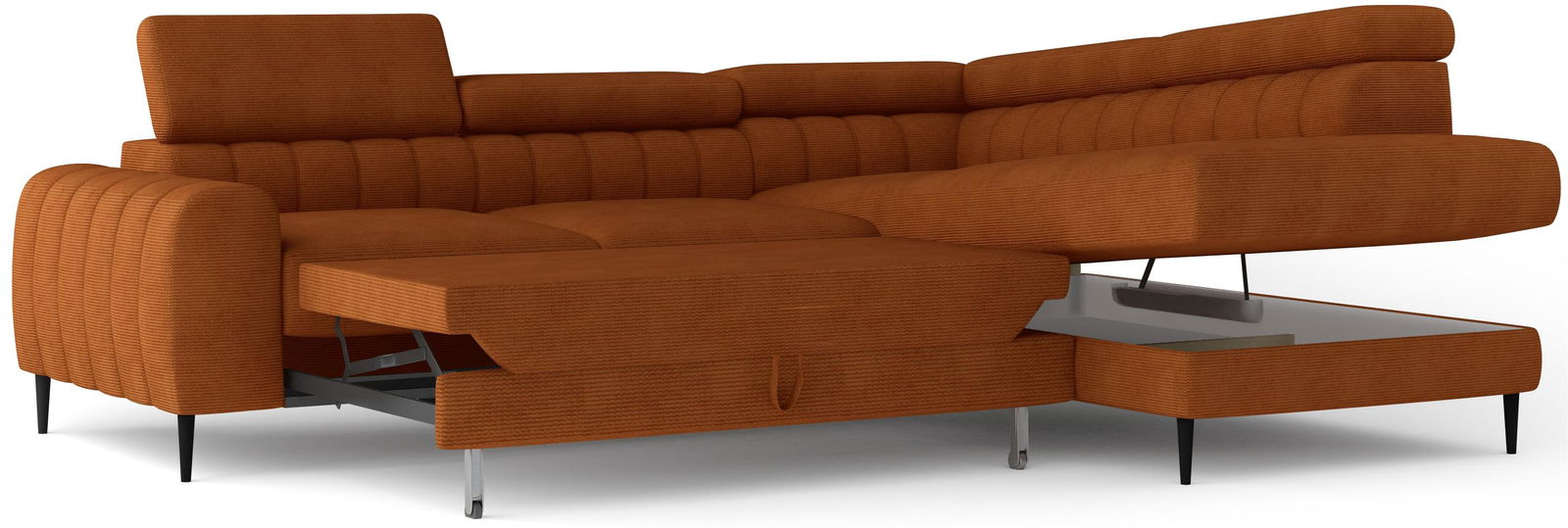 Γωνιακός καναπές Teron κομψού σχεδιασμού με πρακτικές λειτουργίες που αυξάνουν την χρηστική του αξία. Η εύκολη μετατροπή του σε κρεβατι συνδυαστικά με τον αποθηκευτικό χώρο κάτω απο το ανάκλινδρο τον καθιστούν ιδανική επιλογή ακόμα και για μικρότερους χώρους. Οι βολικές του διαστάσεις και η λειτουργία ανάκλισης στα προσκέφαλα θα προσφέρουν σε εσάς και τους φίλους σας στιγμές χαλάρωσης και ξεκουρασης. Μπορει να ταιριάξει με διάφορα είδη διακόσμησης και να συμπληρώσει αρμονικά τον χώρο του καθιστικού σας χάρη στην μίνιμαλ αισθητική του.
