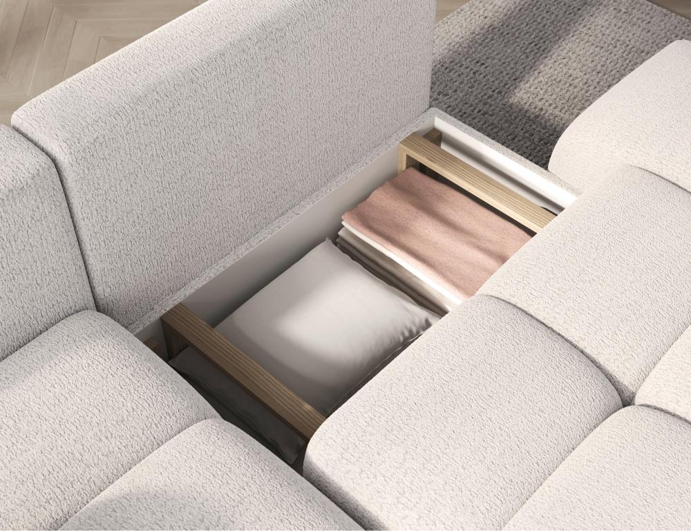 Γωνιακός Καναπές Vitalo υψηλής κομψότητας και μοντέρνου σχεδιασμού, ένα κομμάτι που αναδεικνύει τον χώρο με καθαρή αισθητική και διακριτική πολυτέλεια. Με άνετες διαστάσεις και εύκολη μετατροπή σε κρεβάτι, προσφέρει ευελιξία και αρμονία στο καθημερινό σας περιβάλλον. Τη χρηστική του αξία συμπληρώνει το ενσωματωμένο δοχείο κλινοσκεπασμάτων, που ενισχύει την πρακτικότητα χωρίς να αλλοιώνει τη λιτή του φινέτσα.