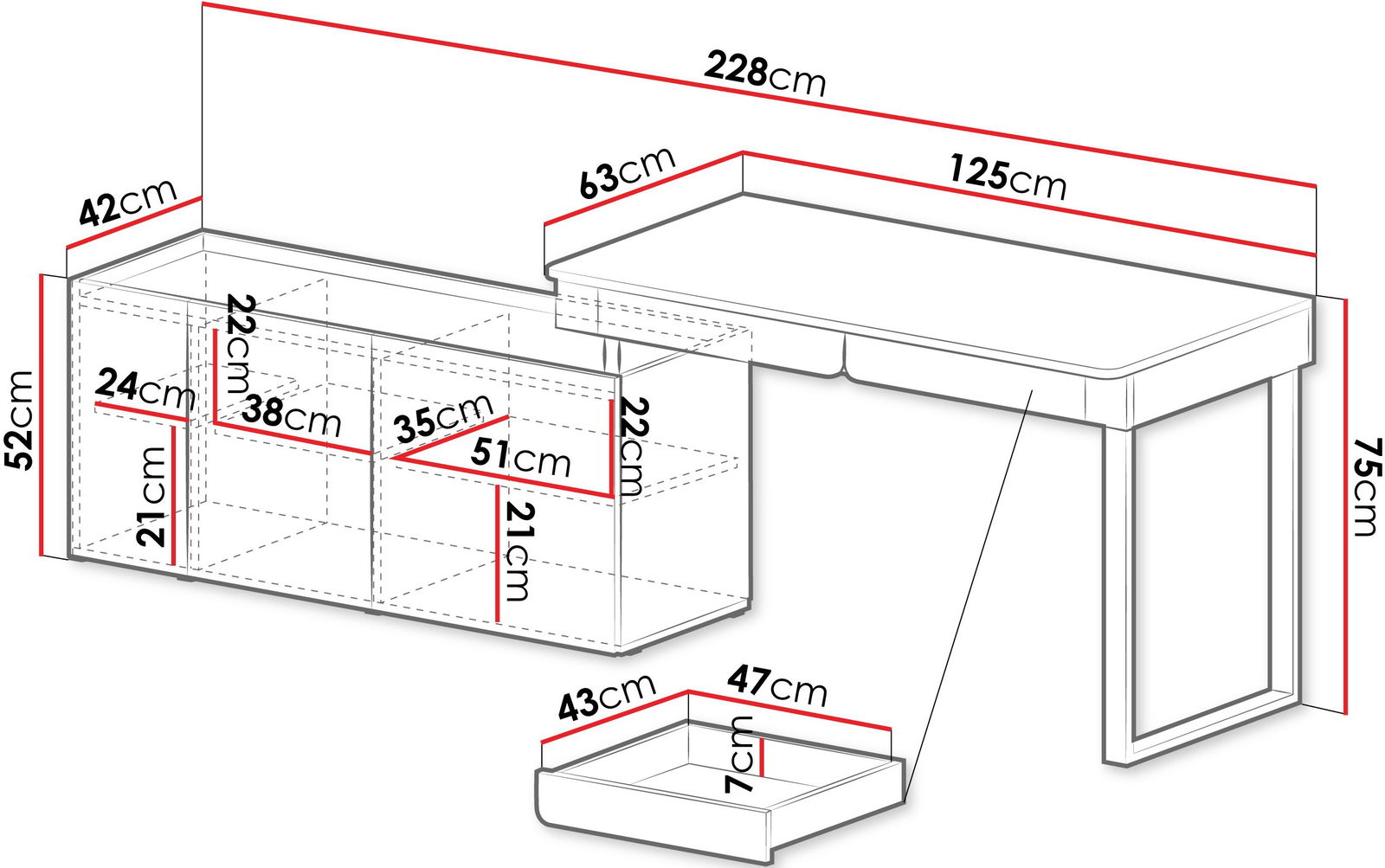 * Tο γραφείο είναι universal (αριστερά/δεξιά) – ο πελάτης ανοίγει τις τρύπες που απαιτούνται για την επιλεγμένη διάταξη.
