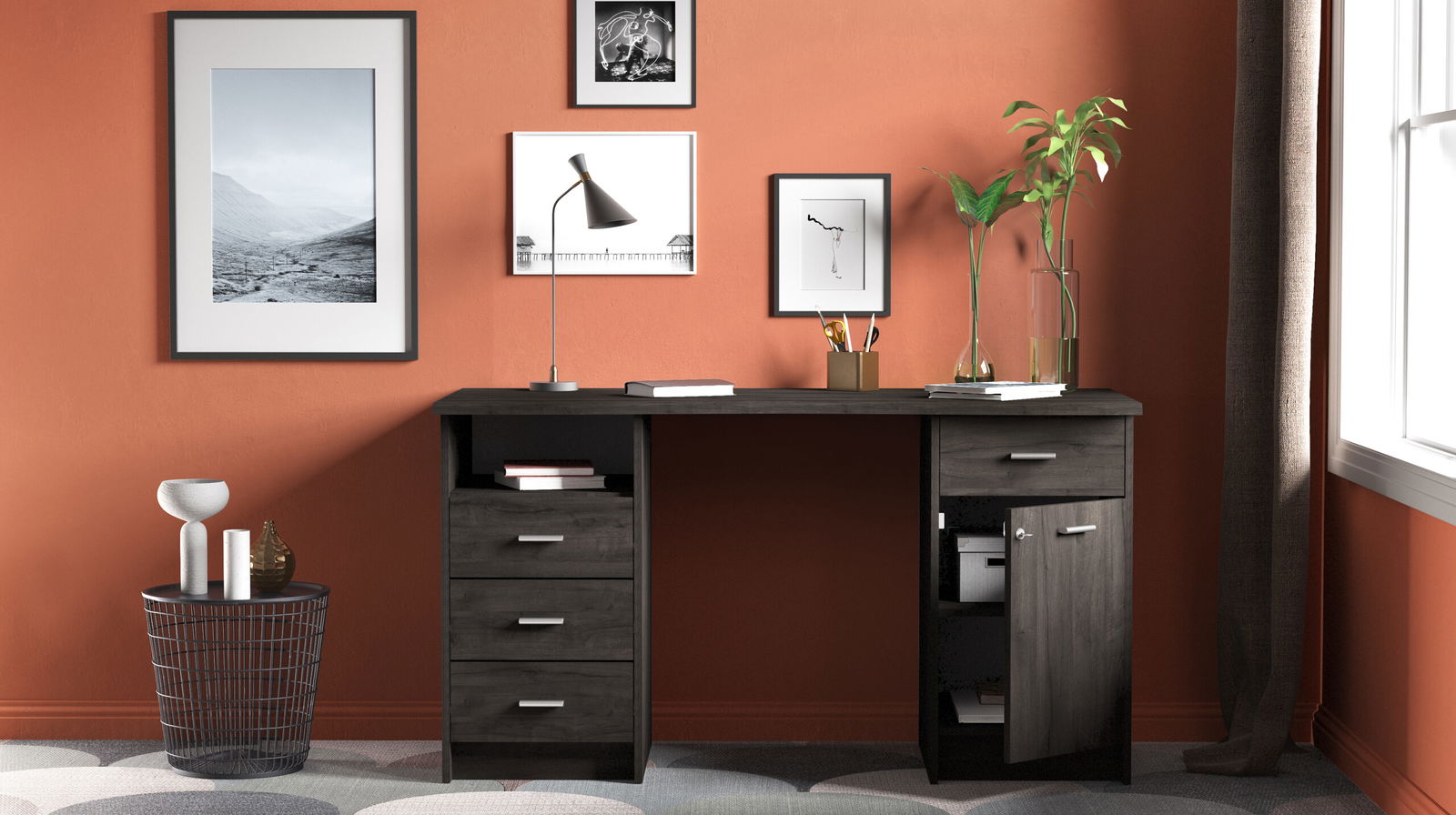Γραφείο Nice II σε κλασσικό και πρακτικό σχεδιασμό. Η επιφάνεια στη μπροστινή πλευρά μεταξύ των 2 μονάδων αποθήκευσης είναι κυρτή για πιο άνετη θέση εργασίας.