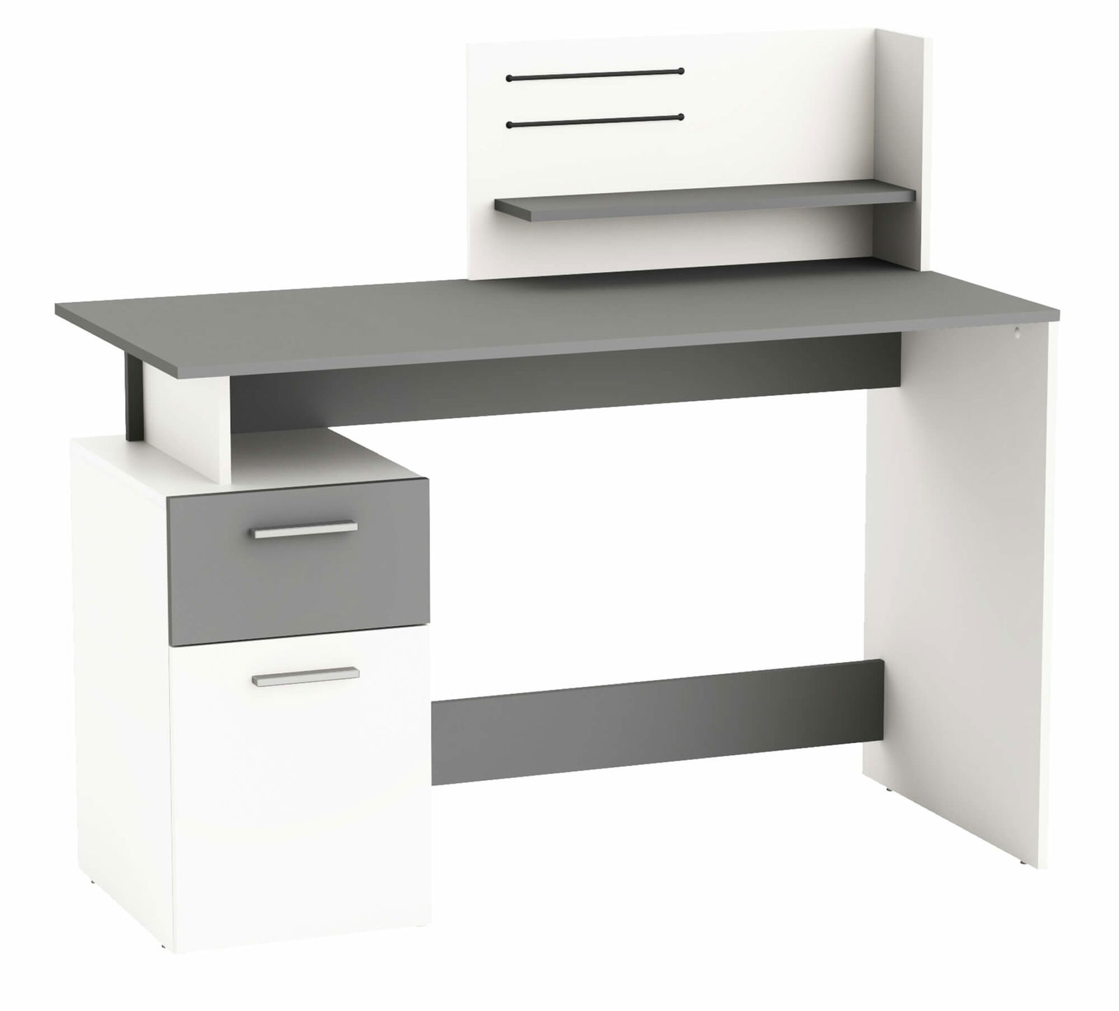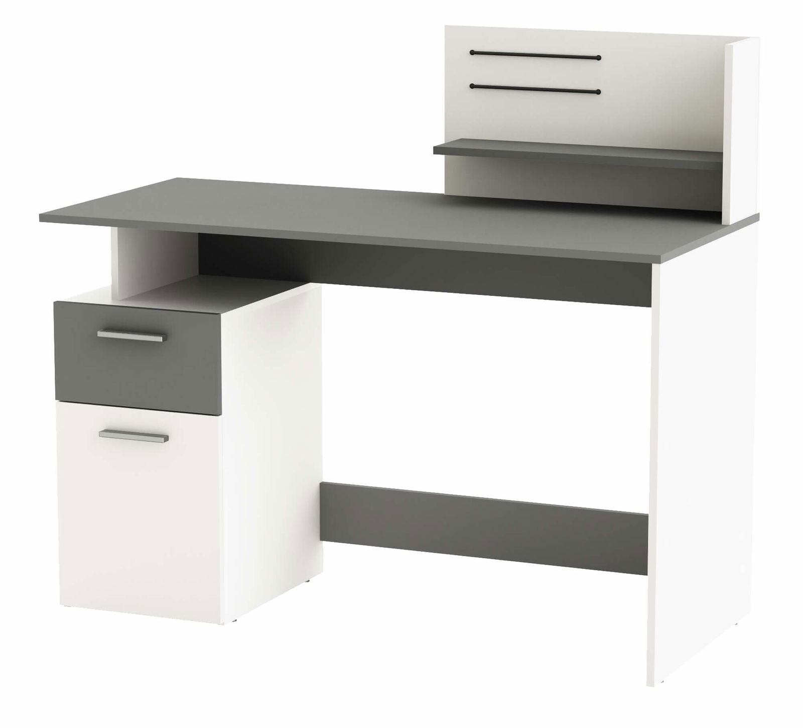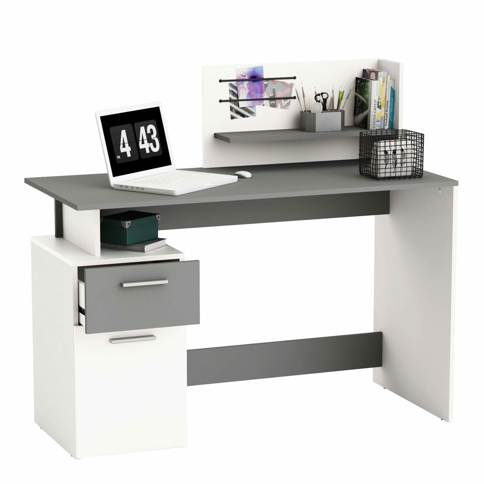Το γραφείο Praxton είναι κατασκευασμένο ώστε να παρέχει μια άνετη επιφάνεια ερφασίας. Η απλή διχρωμία του, θα ταιριάξει άψογα με κάθε διακόσμηση. Διαθέτει άνετους αποθηκευτικούς χώρους ενώ περιλαμβάνει 2 ελαστικές χορδές στο πάνω μέρος, για τοποθέτηση σημειώσεων και φωτογραφιών!