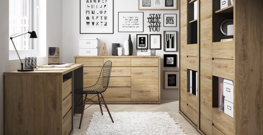 Δημιουργήστε έναν άνετο και παραγωγικό χώρο εργασίας στο σπίτι, επιλέγοντας το γραφείο της σειράς Stockholm. Είναι σχεδιασμένο σε σκανδιναβικό στυλ, με έμφαση στις γήινες αποχρώσεις και την αφαιρετική αισθητική, κάτι που είναι εμφανές στο φινίρισμα σε φυσικό χρώμα, τα έντονα γεωμετρικά σχέδια και το σύστημα ανοίγματος χωρίς λαβές.