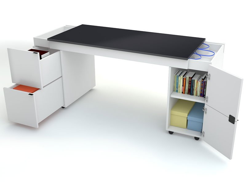 – Δυνατότητα μετατροπής της διάταξης του γραφείου μετακινώντας τα ντουλάπια