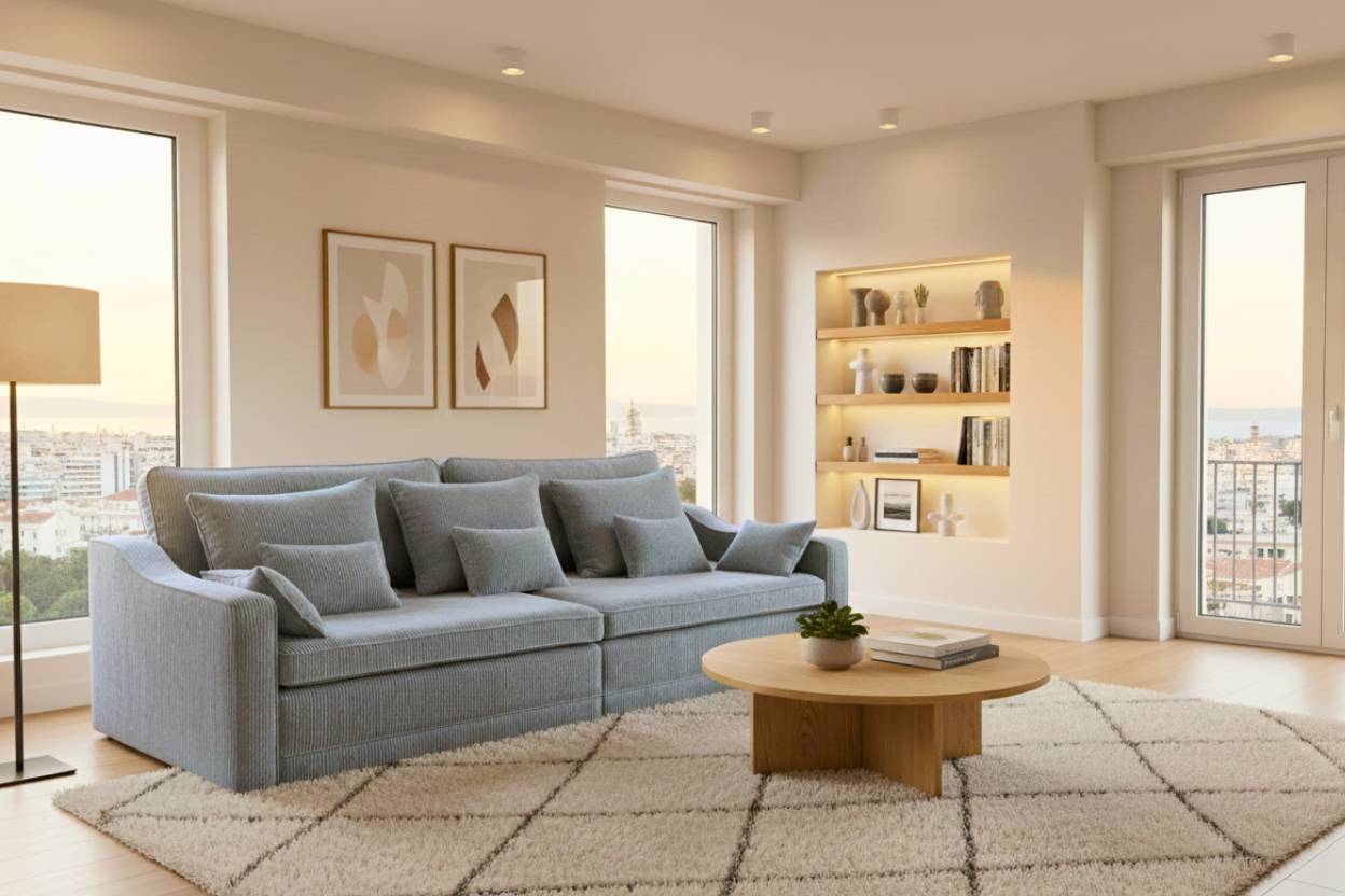 Καναπές Cesaria τριθέσιος μοντέρνας κατασκευής, εξαιρετικά άνετων διαστάσεων που θα γεμίσει τον χώρο του σαλονιού ή του καθιστικού σας.