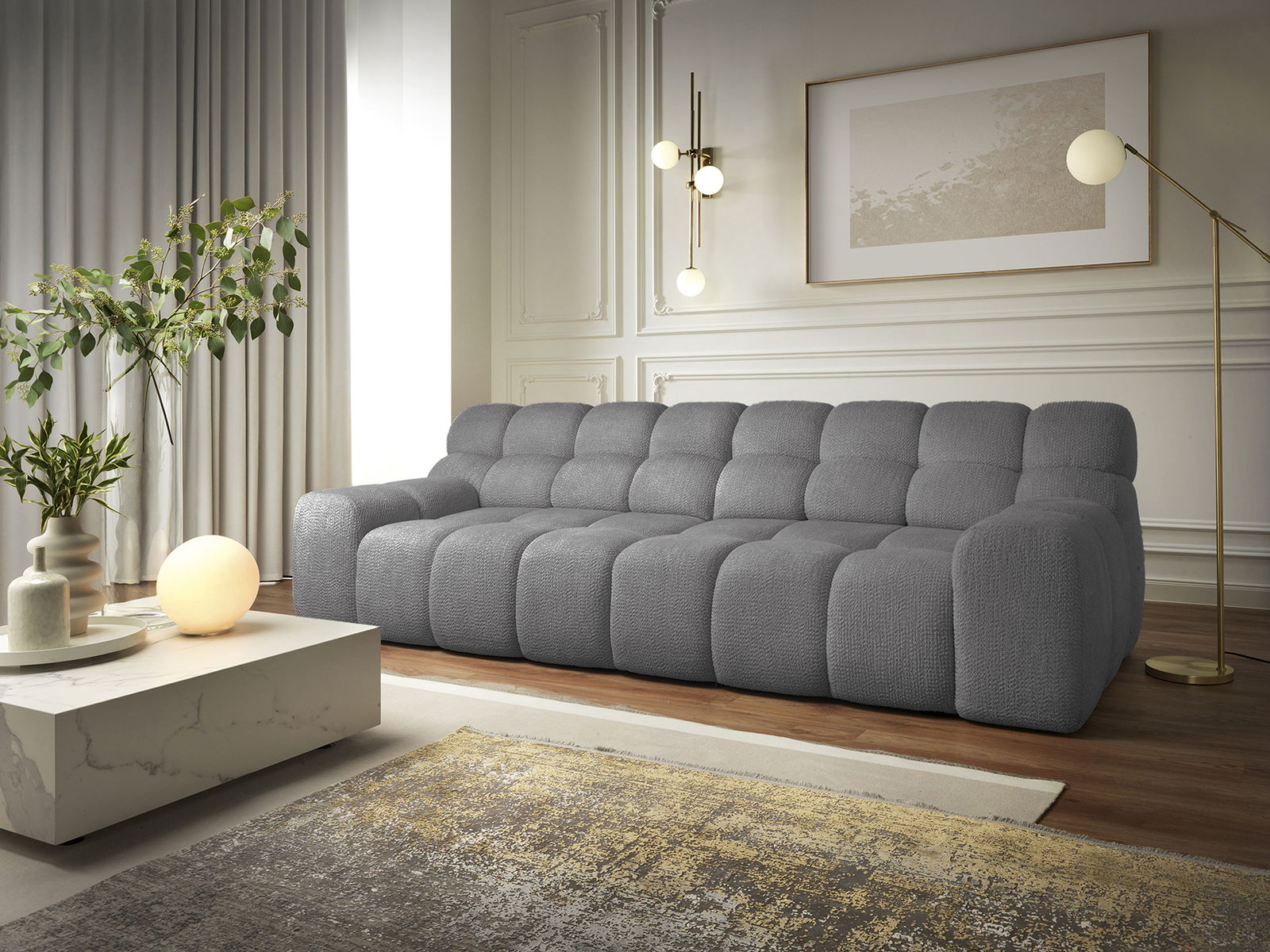 Κάντε μια μεγάλη δήλωση στο σαλόνι σας με τον μεγάλο καναπέ Chenille τριθέσιο. Αυτός ο εντυπωσιακός και μοναδικά σχεδιασμένος καναπές επαναπροσδιορίζει την άνεση, προσφέροντας μια πολυτελή εμπειρία καθισμάτων με μια αδιαμφισβήτητη μοντέρνα αισθητική που μαγνητίζει την προσοχή.