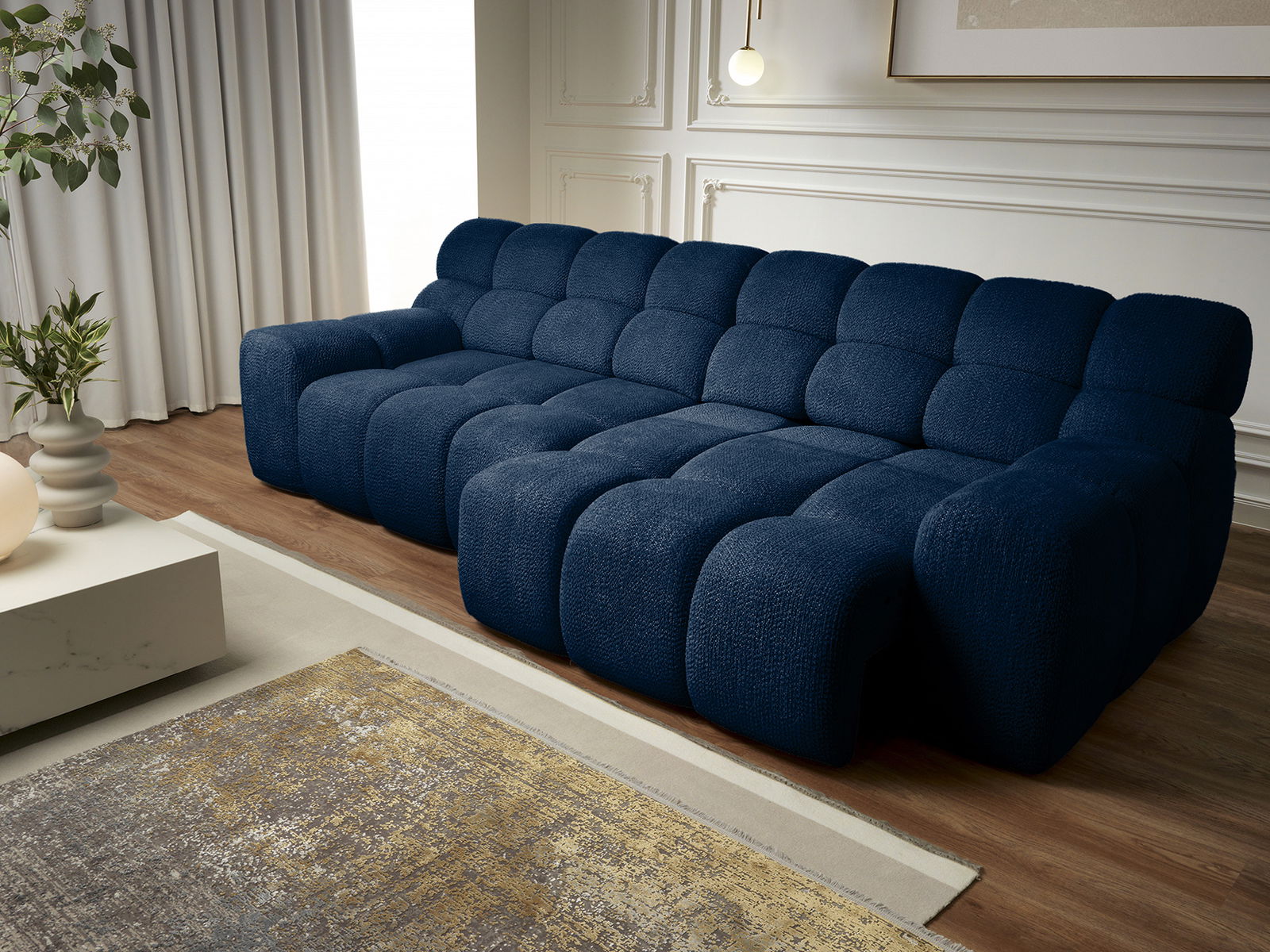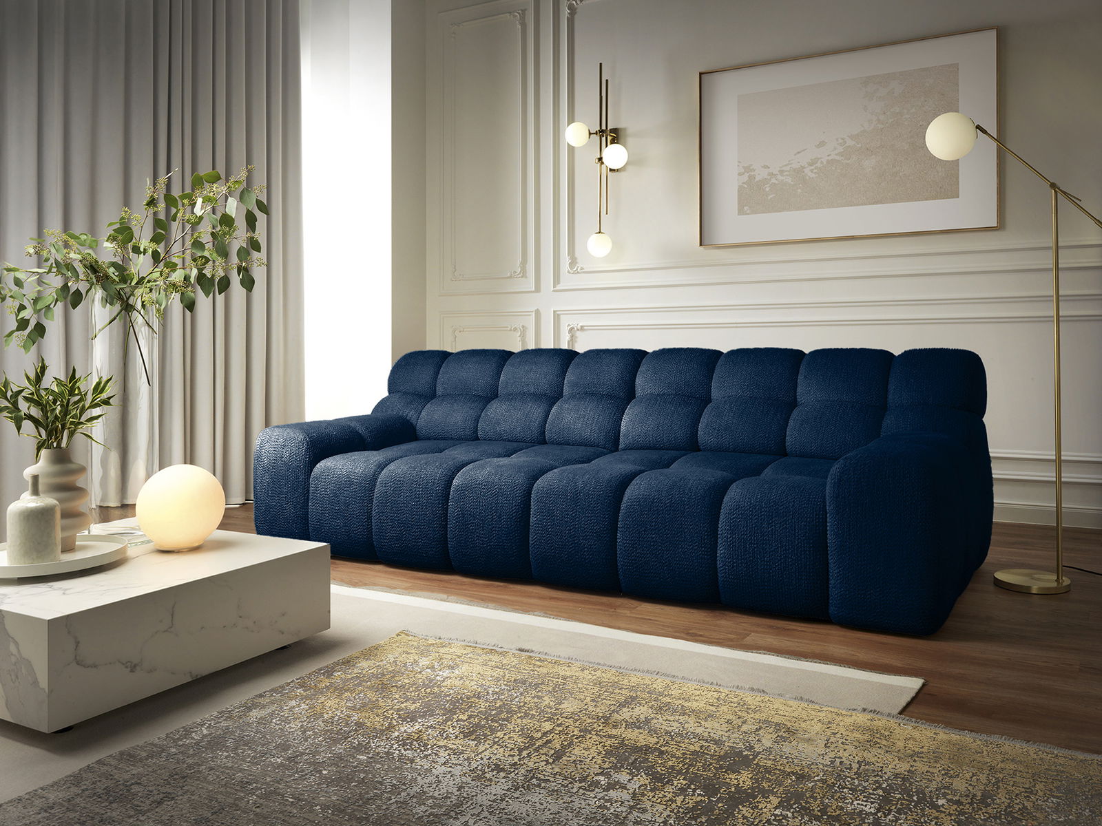Κάντε μια μεγάλη δήλωση στο σαλόνι σας με τον μεγάλο καναπέ Chenille τριθέσιο. Αυτός ο εντυπωσιακός και μοναδικά σχεδιασμένος καναπές επαναπροσδιορίζει την άνεση, προσφέροντας μια πολυτελή εμπειρία καθισμάτων με μια αδιαμφισβήτητη μοντέρνα αισθητική που μαγνητίζει την προσοχή.
