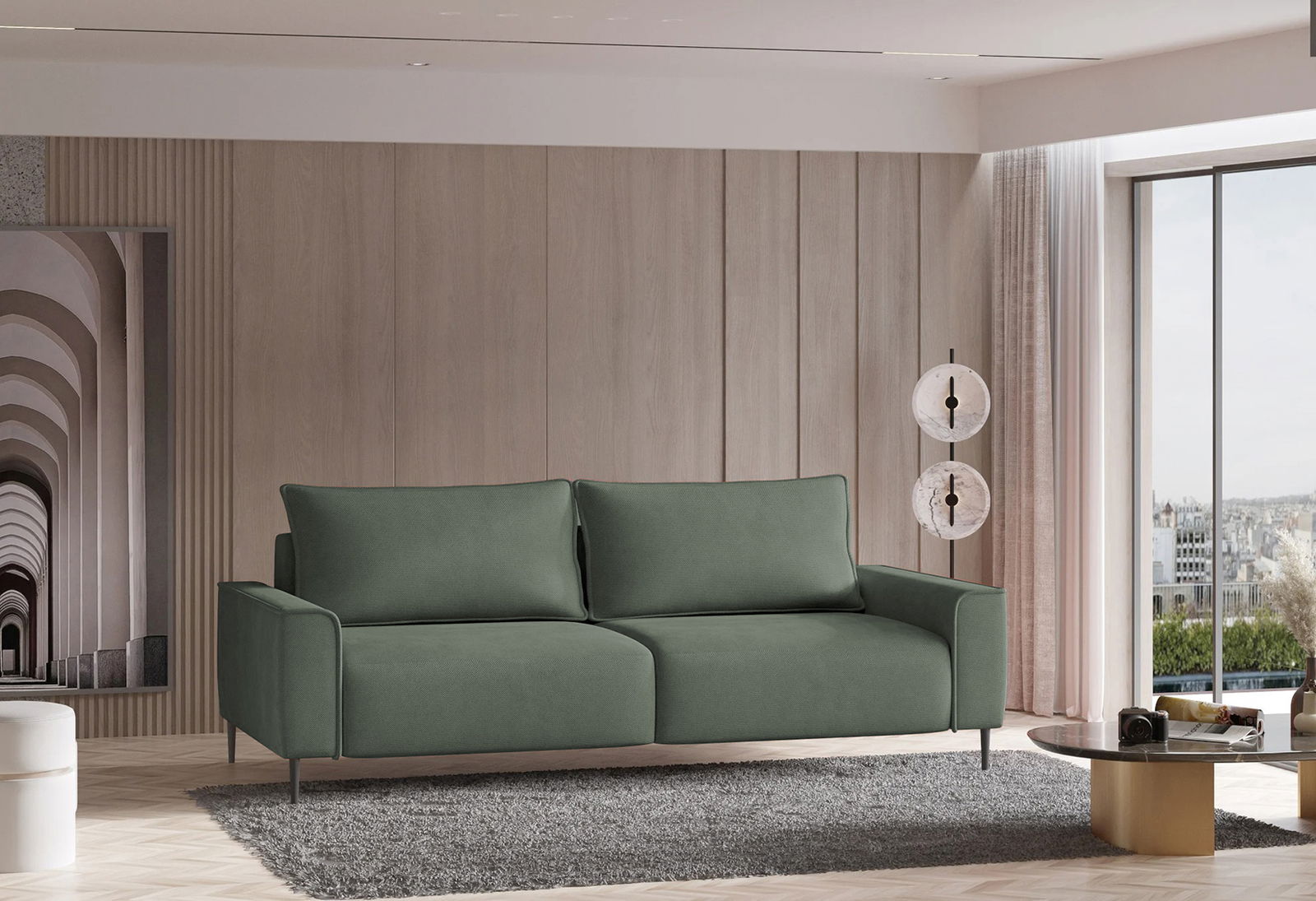 Αναβαθμίστε το χώρο σας με τον καναπέ Kaelen διθέσιο, ένα αριστούργημα σύγχρονου σχεδιασμού που συνδυάζει τέλεια την κομψή αισθητική με τη βαθιά άνεση. Η φιλόξενη παρουσία του και οι καθαρές γραμμές του τον καθιστούν ιδανικό επίκεντρο για κάθε σύγχρονο σπίτι.