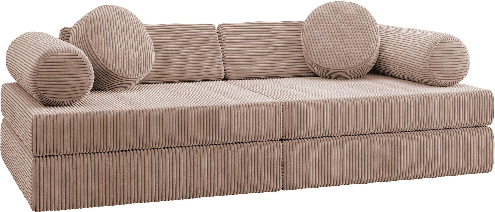 Ο καναπές κρεβάτι Adell είναι μια εξαιρετική λύση για το παιδικό δωμάτιο. Αυτό το αρθρωτό μοντέλο δεν είναι μόνο ιδανικό για χαλάρωση, αλλά προσφέρει και ατελείωτες δυνατότητες παιχνιδιού! Χάρη στις ευέλικτες διαμορφώσεις του, ο καναπές διεγείρει τη δημιουργικότητα στα παιδιά. Μπορεί να μετατραπεί σε ένα μικρό φρούριο, ένα κατάστημα ή ότι άλλο φανταστεί το παιδί.