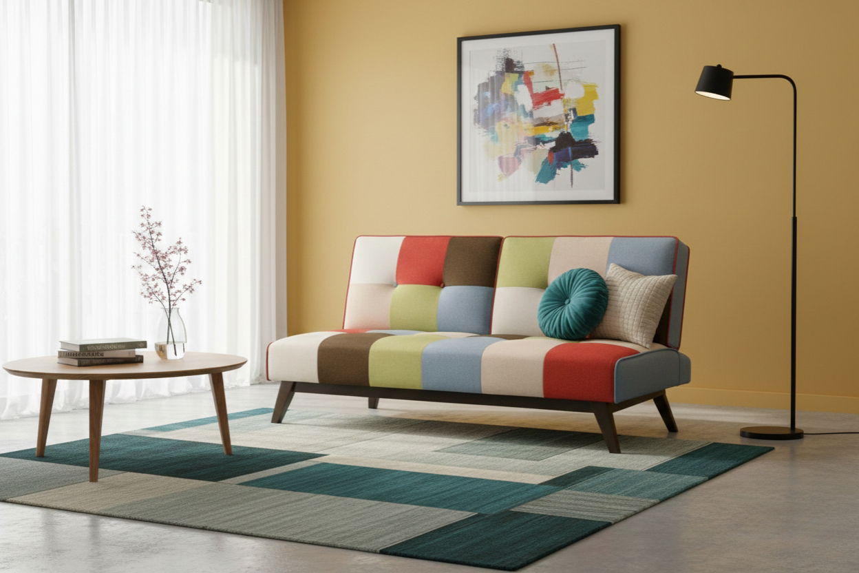 Καναπές – Κρεβάτι Jumble, μοντέρνου σχεδιασμού με έντονες αποχρώσεις, η ιδανική λύση για κάθε σπίτι, χάρη στον μηχανισμό μετατροπής σε κρεβάτι και τις πρακτικές του διαστάσεις.