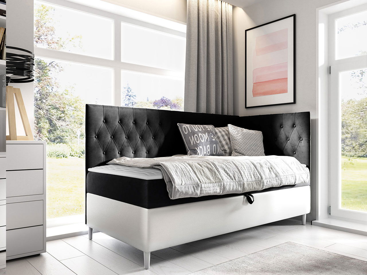 Καναπές κρεβάτι Junior Filip III, πρακτικού σχεδιασμού με αποθηκευτικό χώρο που θα εξυπηρετήσει αρκέτες από τις ανάγκες της καθημερινότητας.