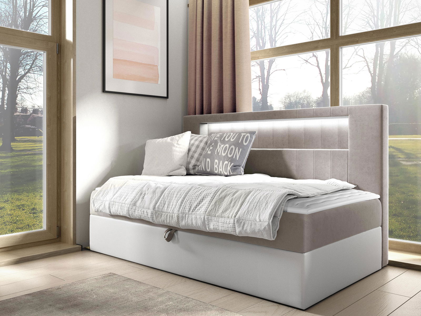 Καναπές κρεβάτι Junior Gold II, πρακτικού σχεδιασμού με αποθηκευτικό χώρο που θα εξυπηρετήσει αρκέτες από τις ανάγκες της καθημερινότητας.