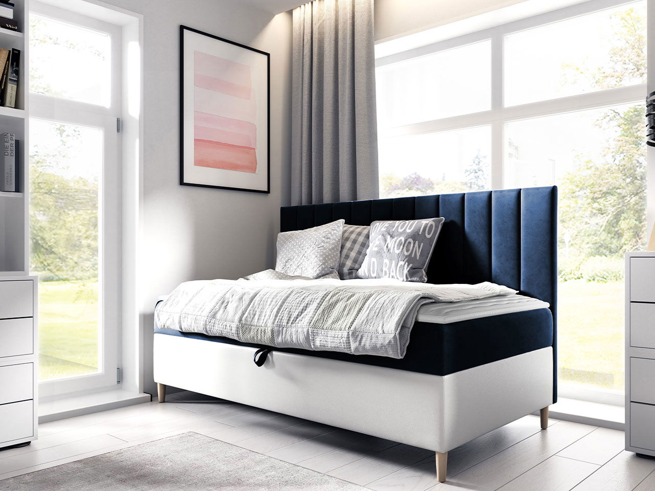 Καναπές κρεβάτι Junior MajaII, πρακτικού σχεδιασμού με αποθηκευτικό χώρο που θα εξυπηρετήσει αρκέτες από τις ανάγκες της καθημερινότητας.