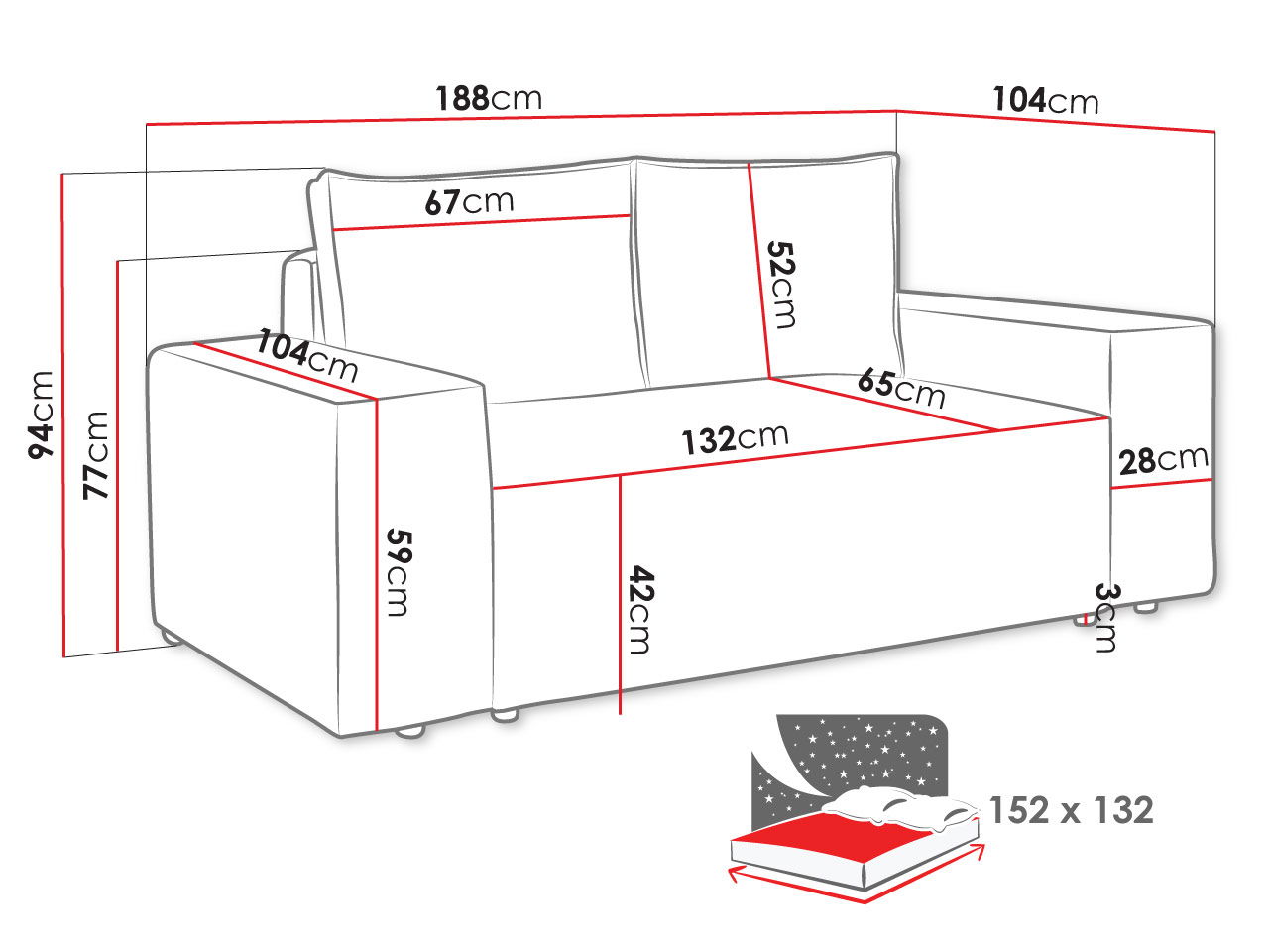 Καναπές – κρεβάτι Malaga I διθέσιος-Mple