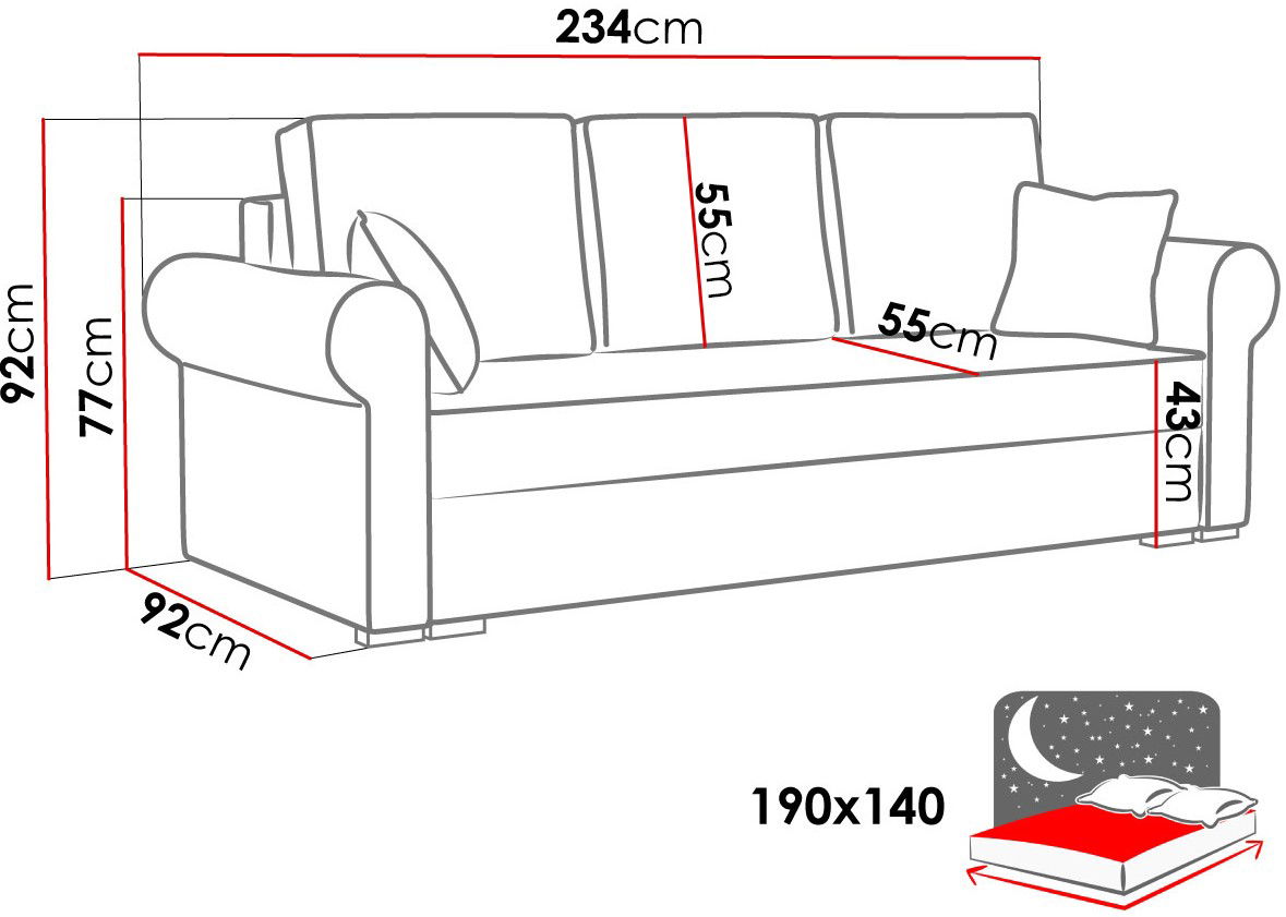 Καναπές-κρεβάτι Olimpia κλασσικού όμορφου σχεδιασμού, ιδανικός για το σαλόνι σας. Το αναπαυτικό του κάθισμα θα σας κάνει να τον λατρέψετε και θα σας προσφέρει στιγμές χαλάρωσης και ξεκούρασης.