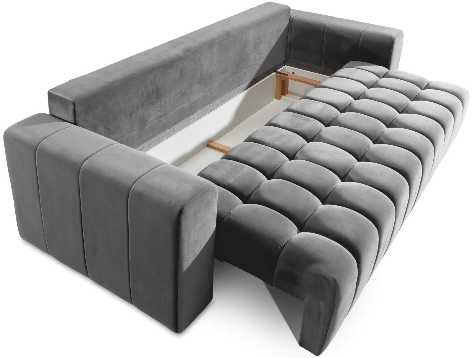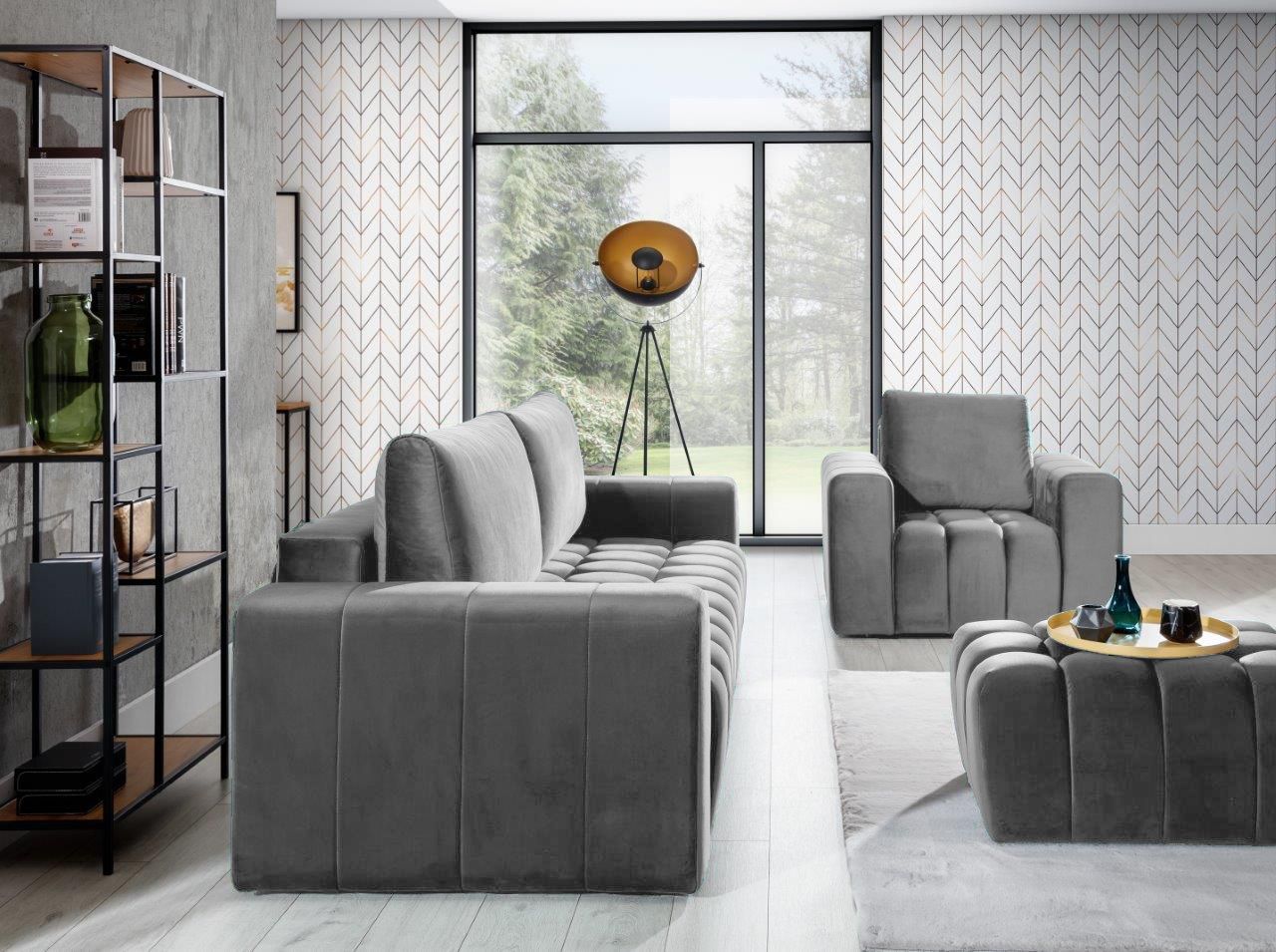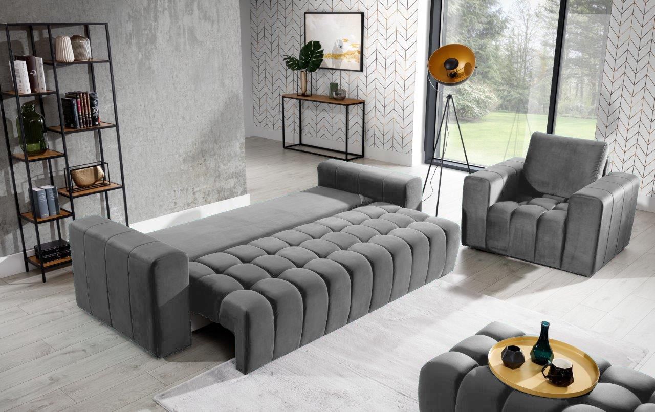 Καναπές – κρεβάτι Valentino, σε κλασικό σχεδιασμό με μοντέρνες λεπτομέρειες κυβικού σχεδιασμού στο κάθισμα, θα προσφέρει σε εσάς και την οικογένειά σας στιγμές χαλάρωσης αλλά και ξεκούρασης κατά την διάρκεια του ύπνου καθώς μετατρέπεται εύκολα σε κρεβάτι.