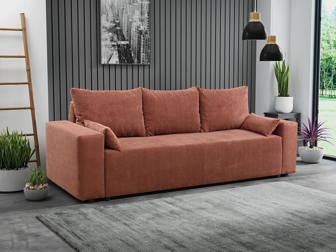 Καναπές Livorno τριθέσιος μίνιμαλ σχεδιασμού με λειτουργία ύπνου και αποθηκευτικό χώρο. Ιδανική επιλογή για μεγάλους αλλά και μικρούς χώρους καθώς σας προσφέρει την δυνατότητα να φιλοξενήσετε τους φίλους σας στην άνεση ενός διπλού κρεβατιού. Διαθέτει υφασμα στο πίσω μέρος που σας επιτρέπει να τον τοποθετήσετε ελευθερα σε όποιο σημείο του χώρου σας βολεύει και οχι απαραίτητα στον τοιχο.