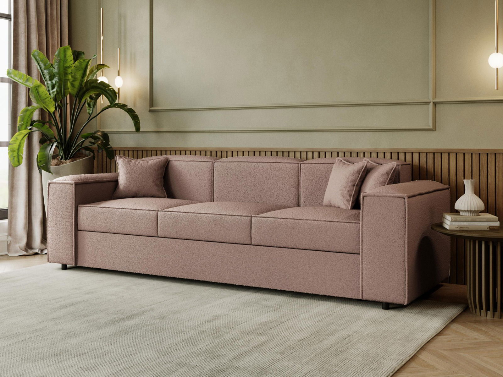 Ο τριθέσιος καναπές Santos συνδυάζει κλασική κομψότητα με μοντέρνα απλότητα. Με γεωμετρικό σχεδιασμό και διακριτικές λεπτομέρειες ρέλι, προσφέρει στυλ και αρμονία στον χώρο.