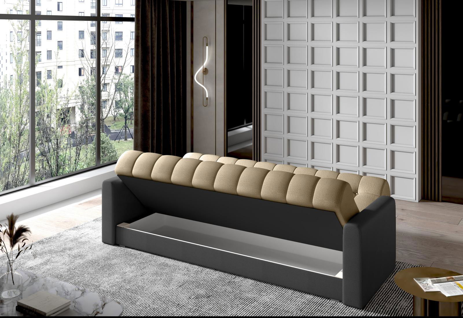 Καναπές Tager συνδυάζει την άνεση με την ξεχωριστή κομψότητα του σχεδίου του, το εξαιρετικό ταίριασμα γήινων χρωμάτων θα δώσει ένταση στον χώρο σας Το μινιμαλ διαχρονικό σχέδιο, ο ευρύχωρος αποθηκευτικός χώρος και η δυνατότητα προσαρμογής του καναπέ σε κρεβάτι δίνει το ξεχωριστό πλεονέκτημα.