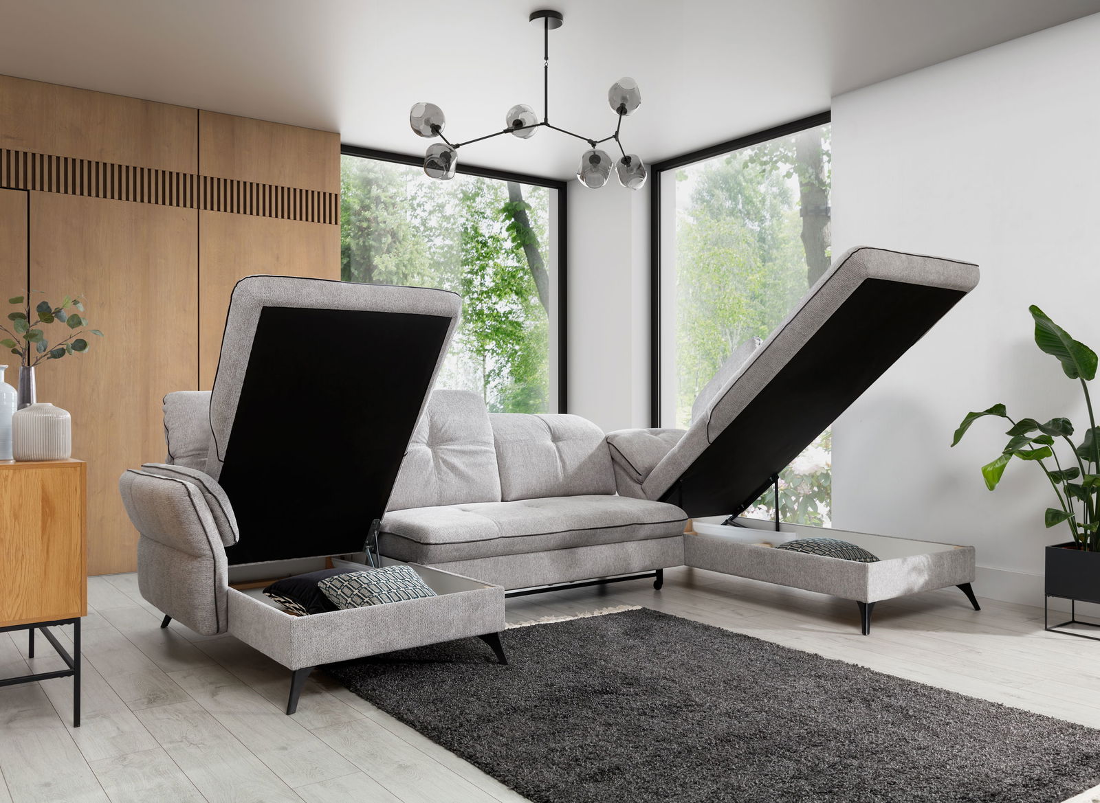 Ο Γωνιακός καναπές Umaru L είναι ένας κομψός και άνετος καναπές που είναι ιδανικός για κάθε σπίτι. Διαθέτει λιτό σχεδιασμό με μαλακά, αφράτα μαξιλάρια που θα σας προσκαλέσουν να χαλαρώσετε και να ξεκουραστείτε. Είναι επίσης εξαιρετικά ευέλικτος, μπορεί να χρησιμοποιηθεί ως καθιστικό για το σαλόνι σας, ως μέρος για να χαλαρώσετε και να παρακολουθήσετε τηλεόραση ή ακόμα και ως κρεβάτι φιλοξενούμενων. Τέλος είναι τόσο άνετος όσο και πρακτικός, χάρης στον κρυφό αποθηκευτικό χώρο σε ιδανικές διαστάσεις.