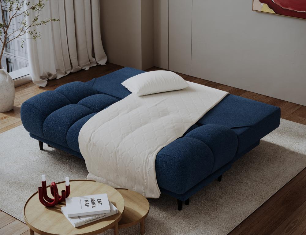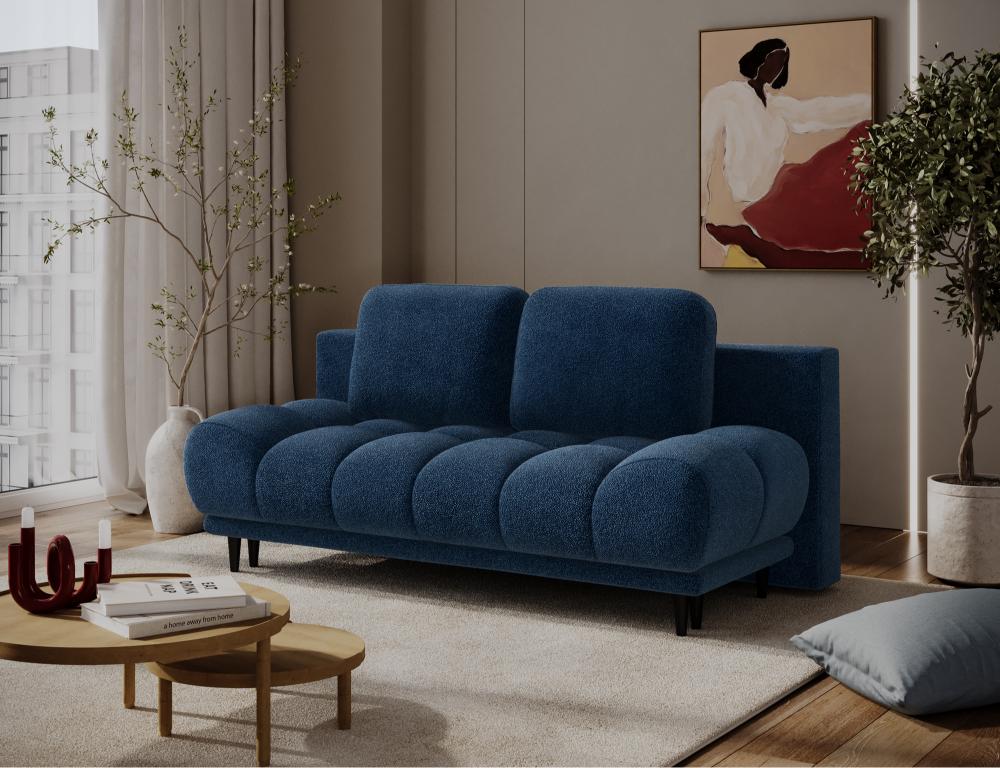 Καναπές Vagio Διθέσιος υψηλής κομψότητας και μοντέρνου σχεδιασμού, ένα κομμάτι που αναδεικνύει τον χώρο με καθαρή αισθητική και διακριτική πολυτέλεια. Σχεδιασμένος σε βολικές διαστάσεις που τον καθιστούν ιδανική επιλογή ακόμη και για μικρότερους χώρους. Διαθέτει λειτουργία εύκολης μετατροπής σε κρεβάτι προσφέροντας ευελιξία και αρμονία στο καθημερινό σας περιβάλλον. Τη χρηστική του αξία έρχεται να συμπληρώσει το ενσωματωμένο δοχείο κλινοσκεπασμάτων, που ενισχύει την πρακτικότητα χωρίς να αλλοιώνει τη λιτή του φινέτσα.