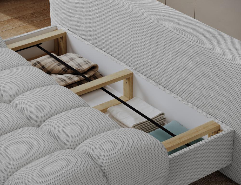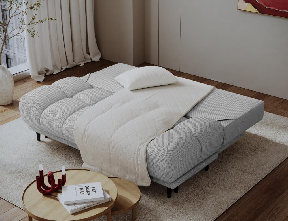 Καναπές Vagio Διθέσιος υψηλής κομψότητας και μοντέρνου σχεδιασμού, ένα κομμάτι που αναδεικνύει τον χώρο με καθαρή αισθητική και διακριτική πολυτέλεια. Σχεδιασμένος σε βολικές διαστάσεις που τον καθιστούν ιδανική επιλογή ακόμη και για μικρότερους χώρους. Διαθέτει λειτουργία εύκολης μετατροπής σε κρεβάτι προσφέροντας ευελιξία και αρμονία στο καθημερινό σας περιβάλλον. Τη χρηστική του αξία έρχεται να συμπληρώσει το ενσωματωμένο δοχείο κλινοσκεπασμάτων, που ενισχύει την πρακτικότητα χωρίς να αλλοιώνει τη λιτή του φινέτσα.