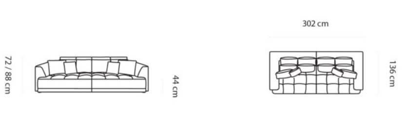 Καναπές Vianca Τριθέσιος μοντέρνου και μίνιμαλ σχεδιασμού με άνετες διαστάσεις. Ο καναπές μπορεί να τοποθετηθεί ελεύθερα καθώς η πλάτη είναι επενδυμένη με ύφασμα.