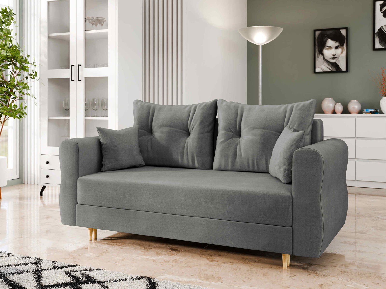 Ο Καναπές Zako Διθέσιος θα εξασφαλίσει την καθημερινή σας χαλάρωση. Πρόκειται για έναν διθέσιο καναπέ που είναι ιδανικός για μικρούς χώρους. Ταιριάζει άψογα σε ένα ζεστό σαλόνι, σε δωμάτιο επισκεπτών ή σε έναν κομψό χώρο υποδοχής σε δημόσιο περιβάλλον. Η κατασκευή του καναπέ-κρεβατιού περιλαμβάνει και αποθηκευτικό χώρο για τα κλινοσκεπάσματα, ο οποίος είναι ιδανικός για επιπλέον κουβέρτες, μαξιλάρια ή πάπλωμα. Ο συμπαγής και πρακτικός καναπές Zako διθέσιος θα ανανεώσει τον χώρο σας!