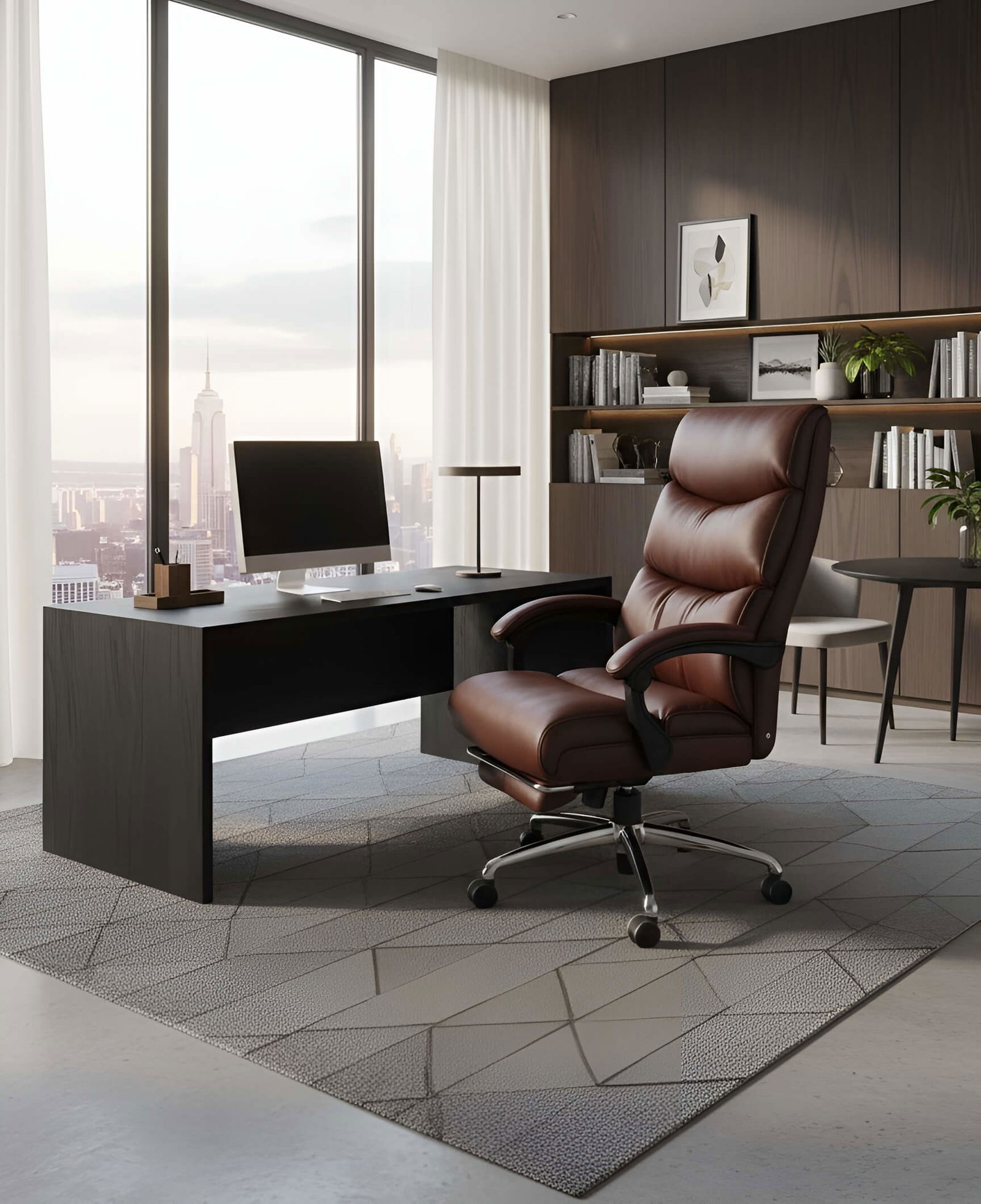 Η διευθυντική καρέκλα Ambrette θα αποτελέσει μια premium επιλογή για να στελεχώσετε το γραφειο σας. Συνδιάστε την άνεση και τον κλασικό σχεδιασμό της, με τον αναπαυτικό μηχανισμό αναδιπλούμενου υποποδίου.
