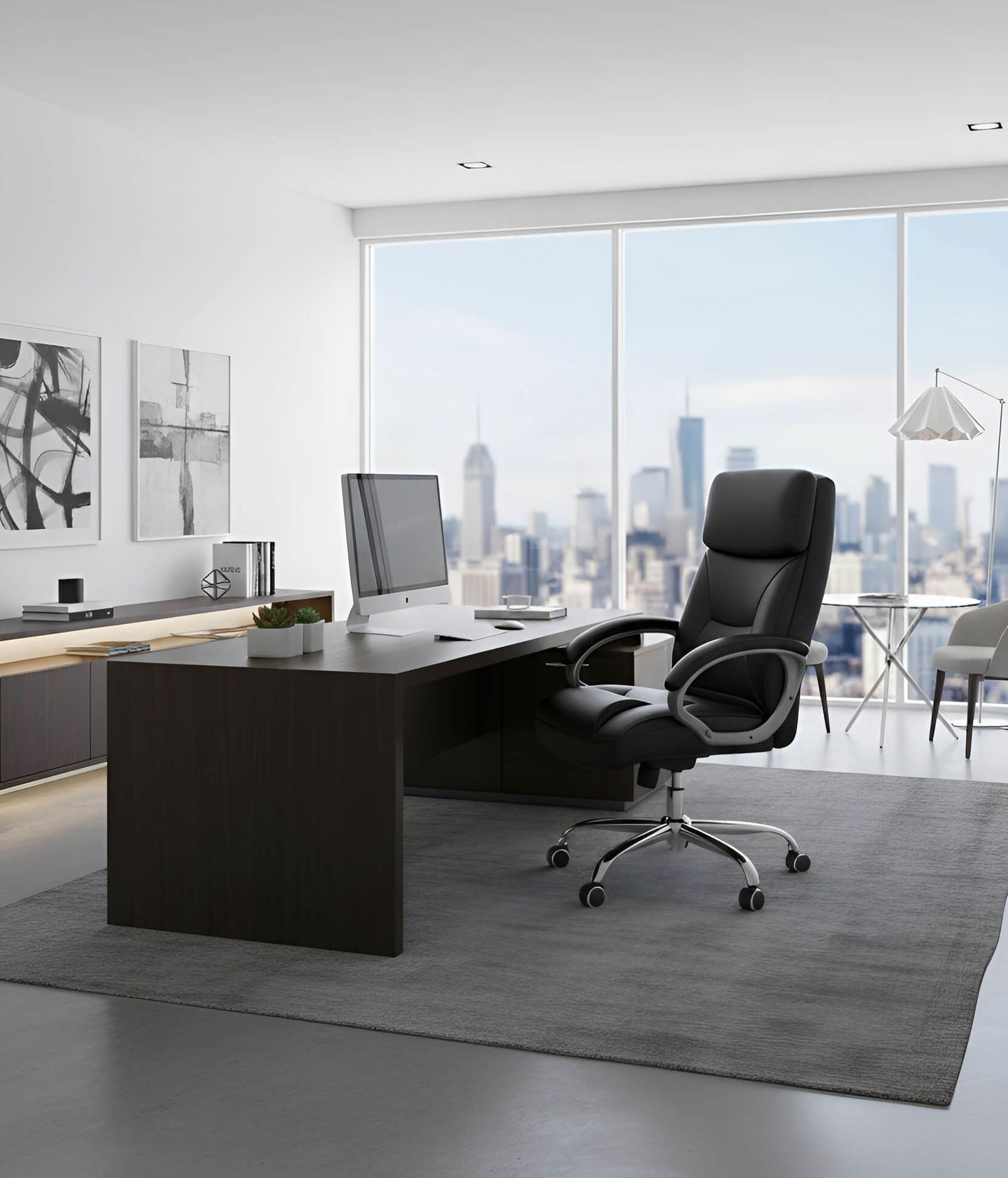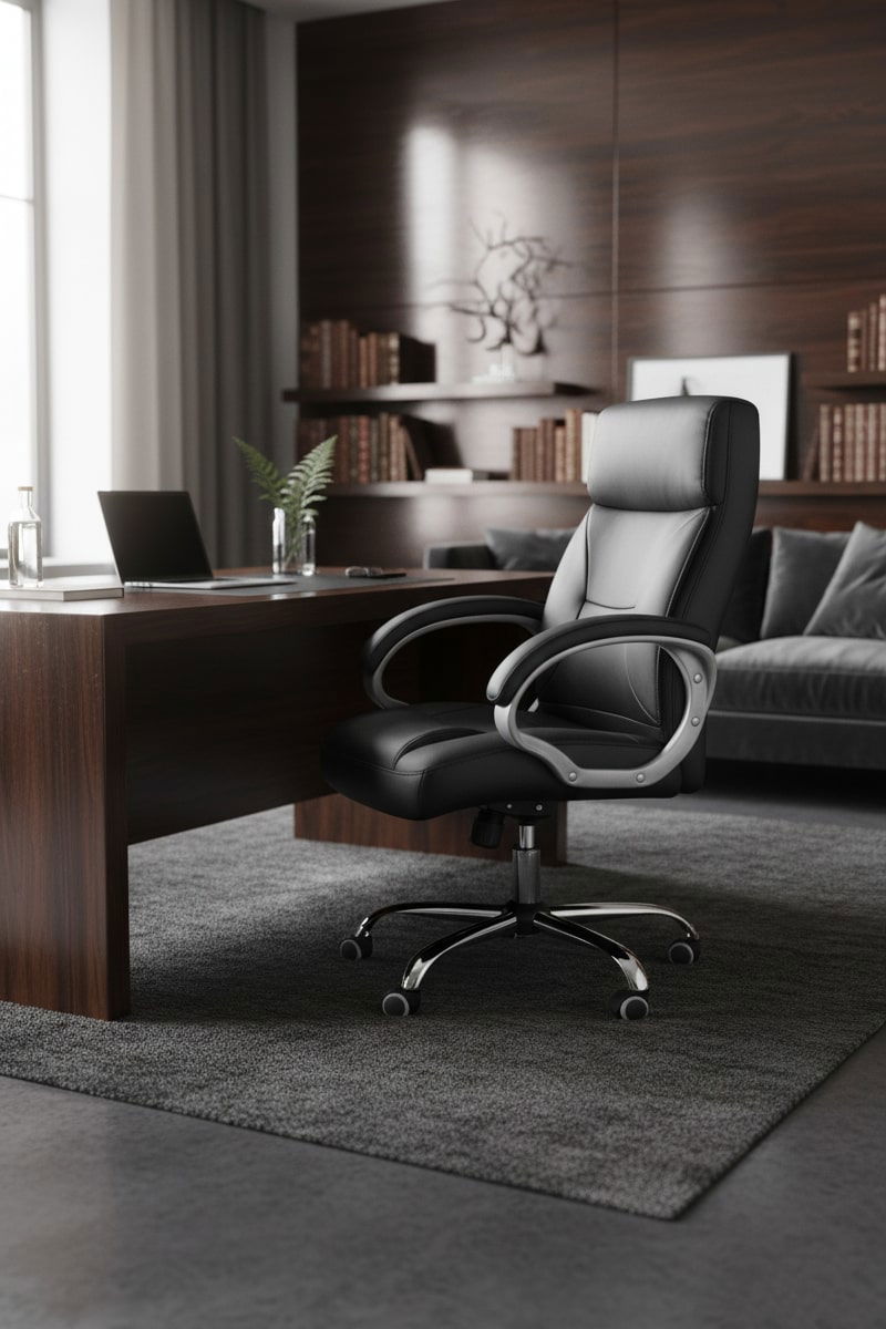 Διευθυντική καρέκλα Cinnabar. Με επένδυση οικολογικής δερματίνης τοσο στο κάθισμα όσο και στην πλάτη της. Ιδανική λύση για όσους επιθυμούν να συνδιάσουν την άνεση και το κλασικό design στον χώρο τους.