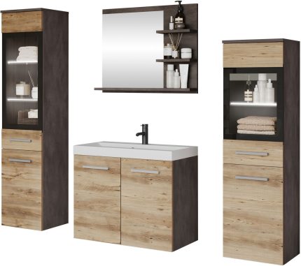Καθρέπτης Cove με ντουλάπι αποθήκευσης και 2 μικρά ράφια στο πλάι.Συνδυάζεται κατάλληλα με τα υπόλοιπα έπιπλα της ίδιας σειράς.