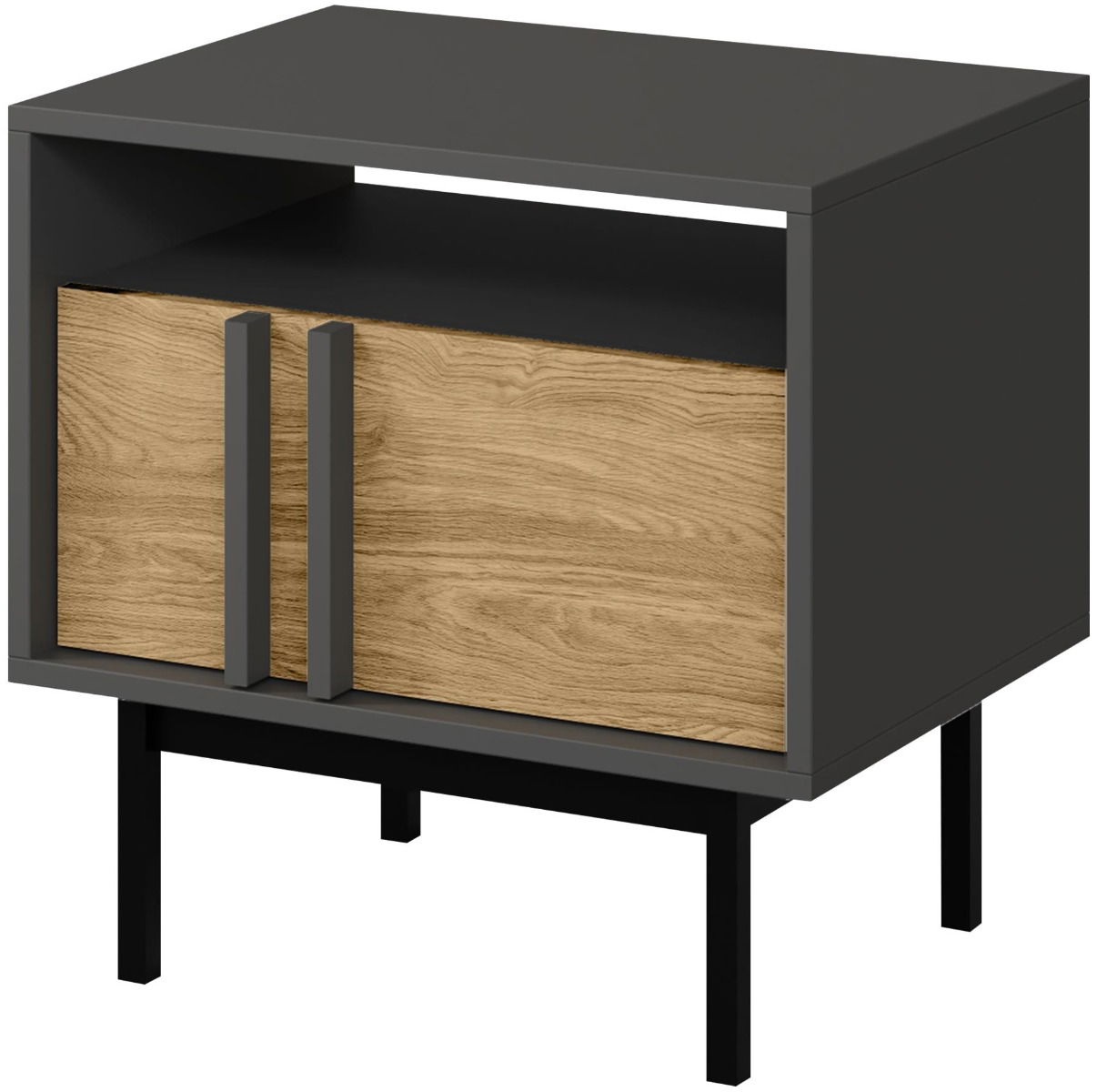 Το κομοδίνο Alsy Reg προσθέτει κομψότητα και στυλ στην κρεβατοκάμαρα. Με ψηλά πόδια και μοντέρνα χρώματα, ταιριάζει εύκολα με κάθε τύπο κρεβατιού, δημιουργώντας μια αρμονική σύνθεση. Διαθέτει πρακτικό συρτάρι και ράφι για εύκολη αποθήκευση των απαραίτητων.