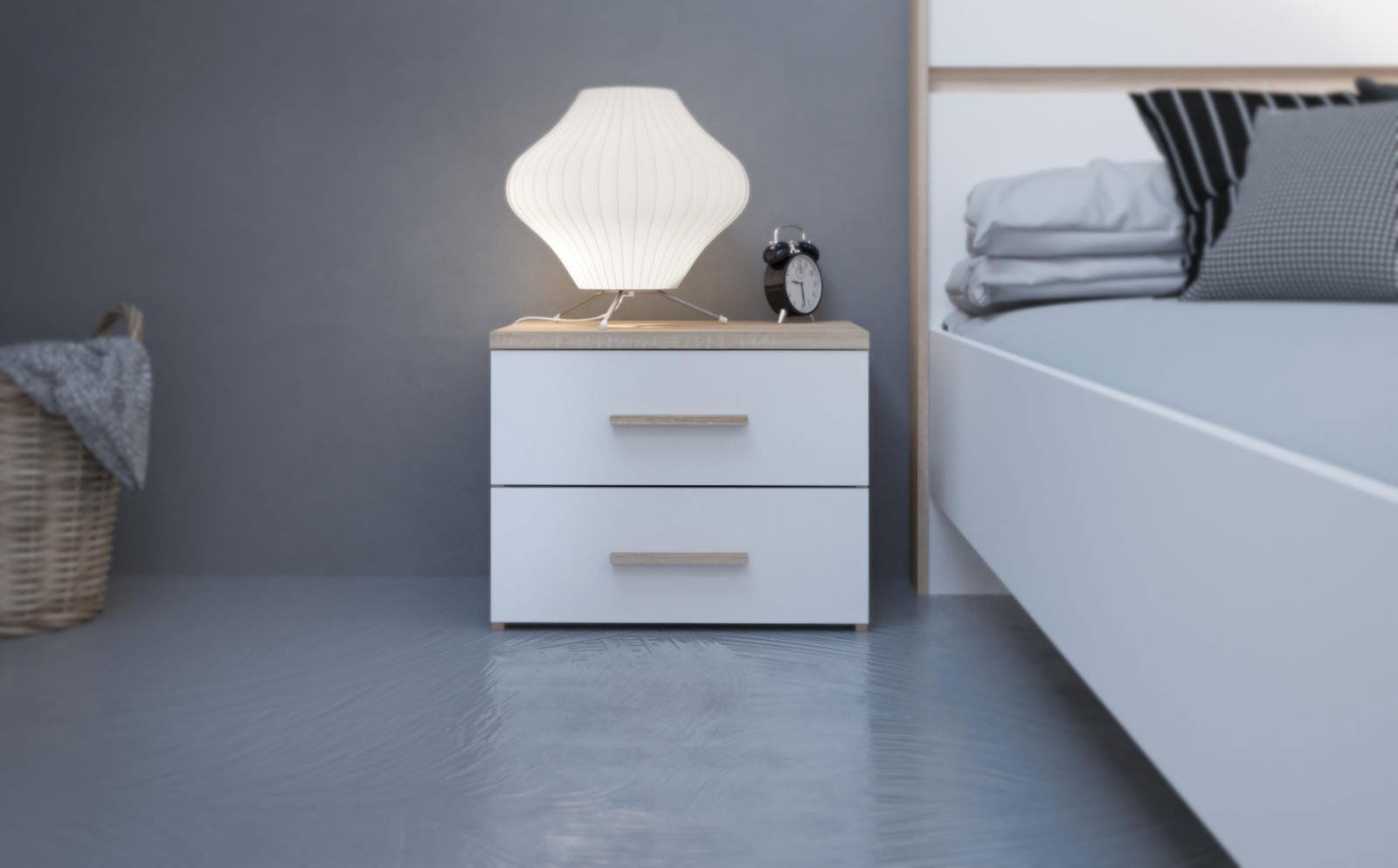 Κομοδίνο Dalia, σε όμορφη διχρωμία φυσικού χρώματος με λευκό του μαργαριταριού