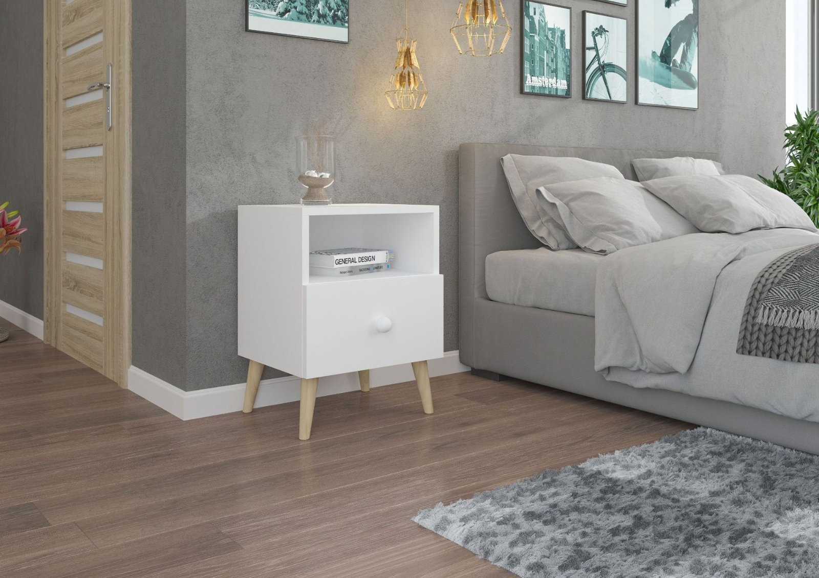 Κομοδίνο Doro, μία ιδανική επιλογή για το χώρο του υπνοδωματίου σας σε μίνιμαλ σχέδιο. Διαθέτει ένα ανοιχτό ράφι και ένα συρτάρι για την αποθήκευση και τοποθέτηση μικρο-αντικειμένων.