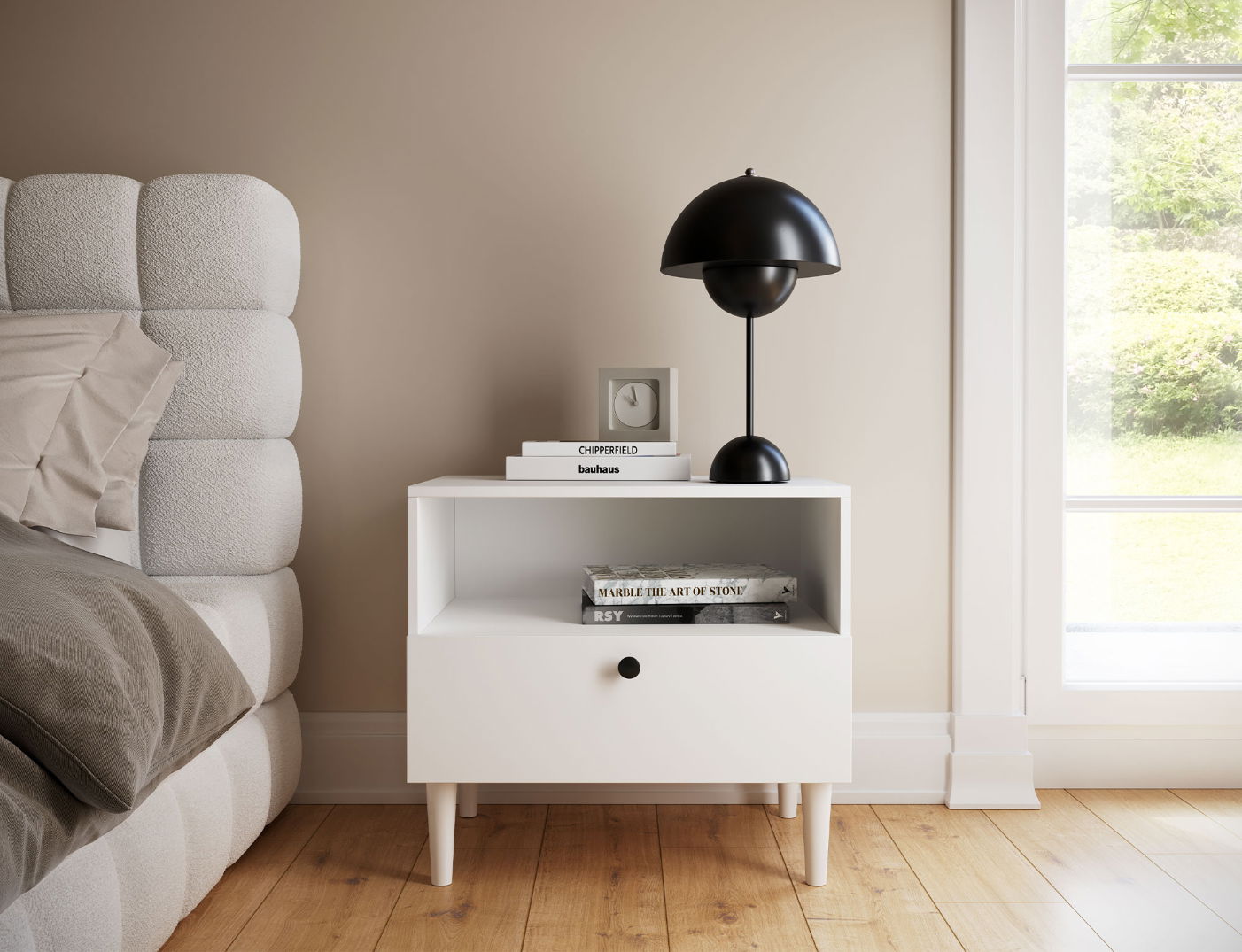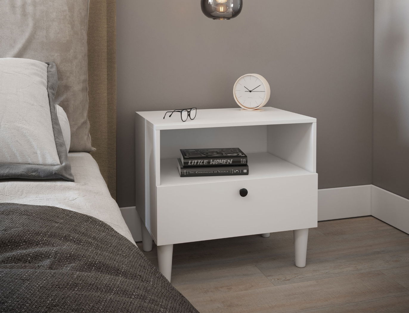 Το κομοδίνο Dullum είναι περισσότερο από ένα απλό έπιπλο. Είναι ένα πολυλειτουργικό έπιπλο που μπορεί να χρησιμοποιηθεί για να τοποθετήσετε βιβλία, πορτατίφ, ξυπνητήρι ή άλλα αντικείμενα. Με το ράφι και το συρτάρι, προσφέρει μια πρακτική λύση για την οργάνωση του χώρου σας.