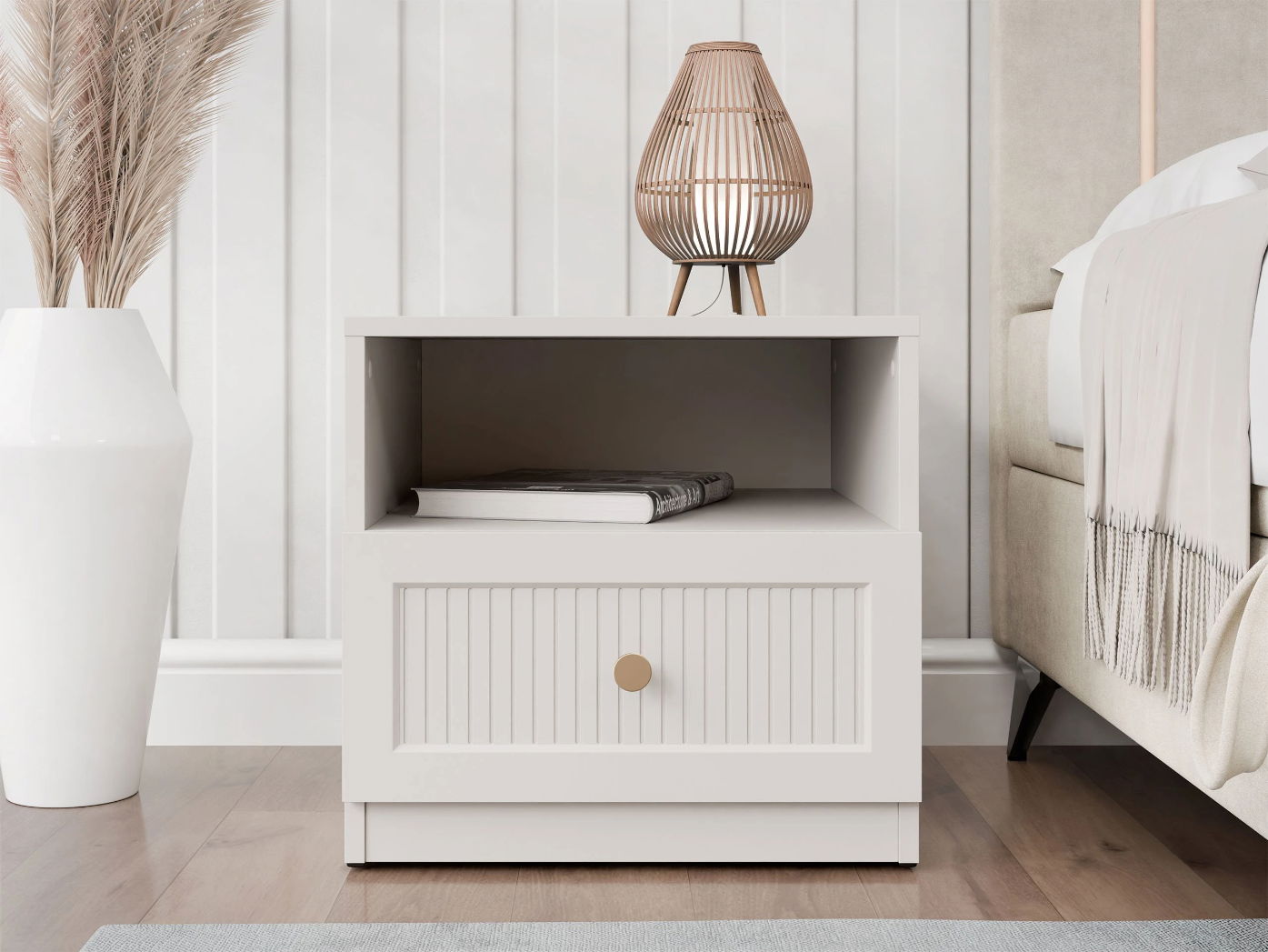 Το κομοδίνο Ferena συνδυάζει κομψότητα και λειτουργικότητα σε compact σχεδιασμό. Η απόχρωση cashmere το καθιστά ιδανικό για διακριτικές και μοντέρνες διακοσμήσεις υπνοδωματίου.