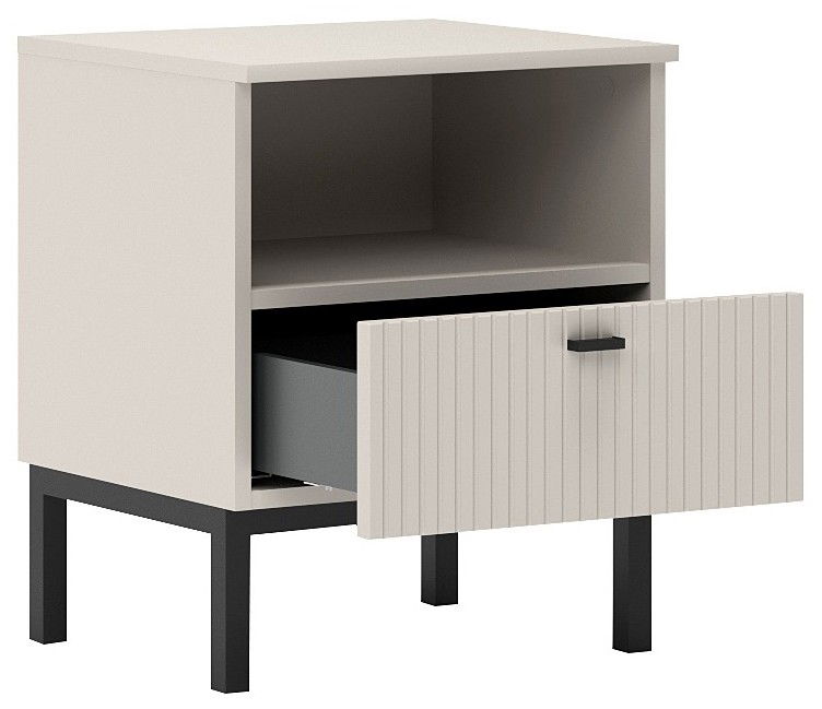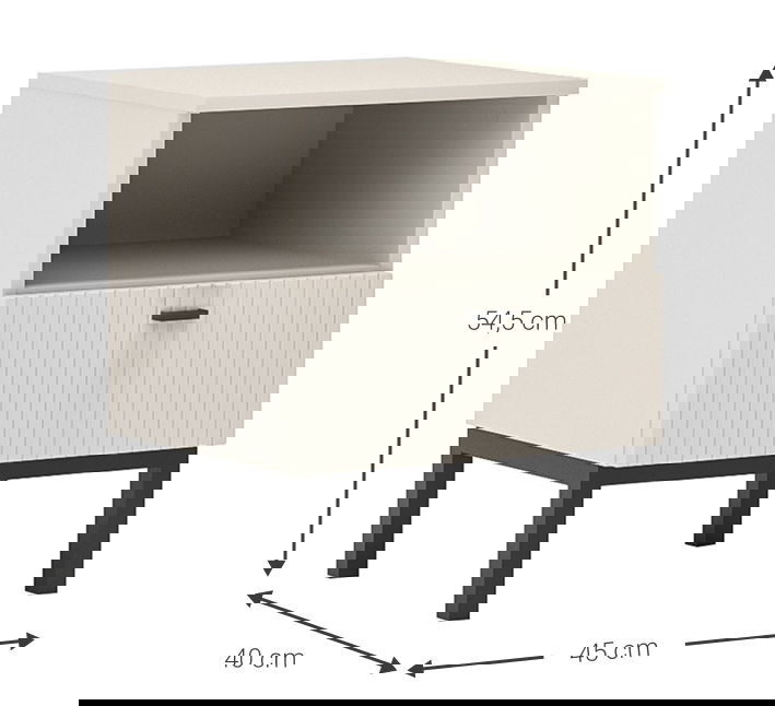 Το κομοδίνο Forku είναι ένα κομψό κομοδίνο με ένα συρτάρι, που συνδυάζει λιτή αισθητική με πρακτικότητα, προσφέροντας διακριτικό χώρο αποθήκευσης και φινέτσα στον χώρο σας.