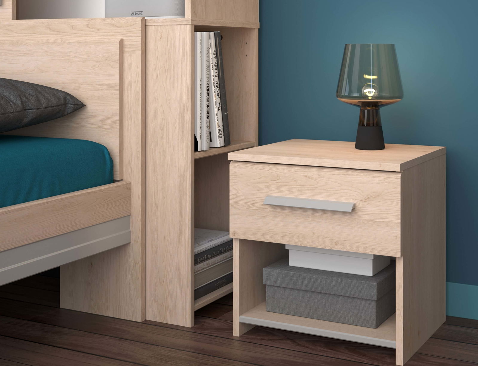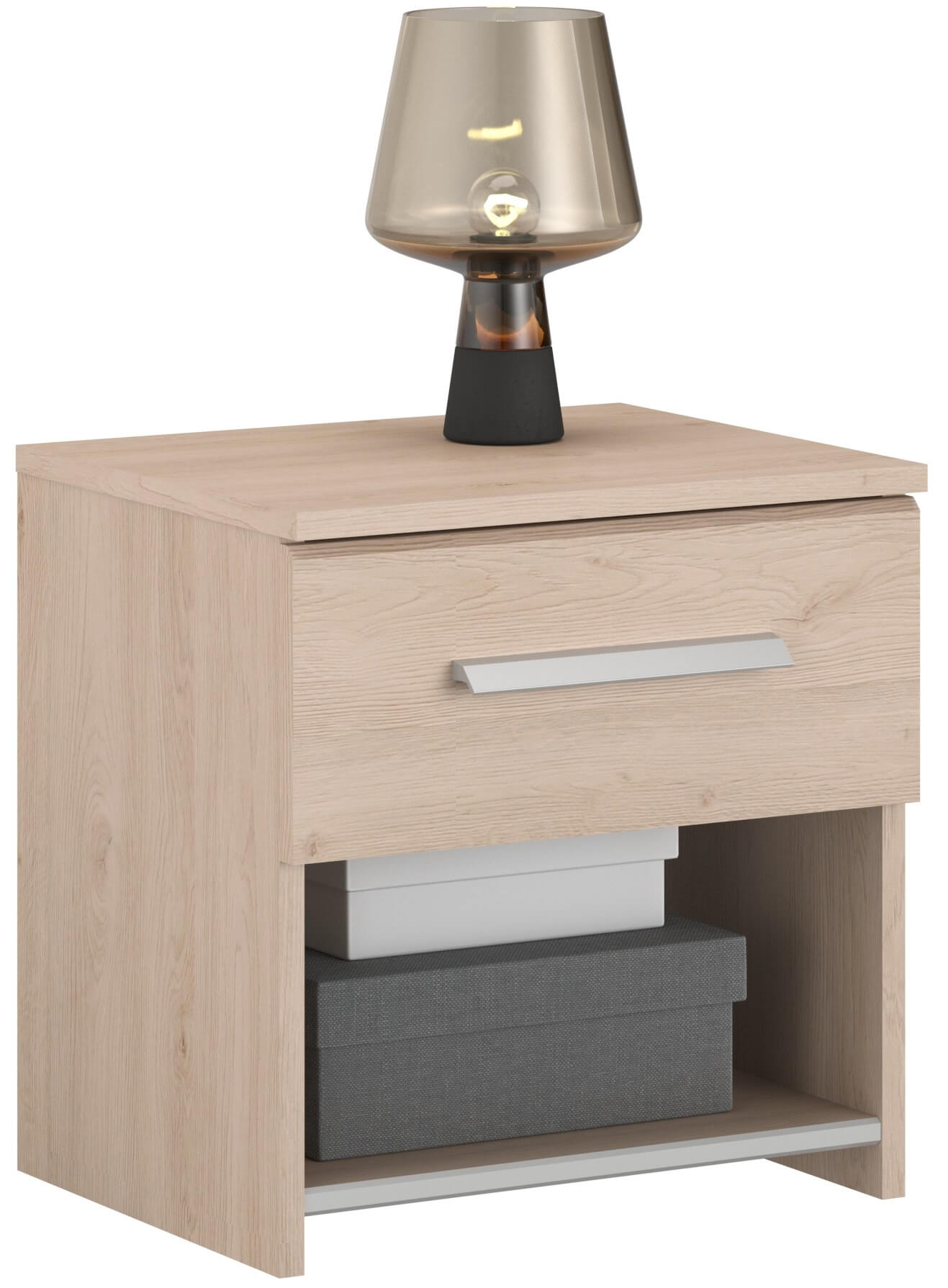 Κομοδίνο Railly σε απαλό φυσικό χρωματισμό, που προσφέρει μια όμορφη και ζεστή αισθητική.