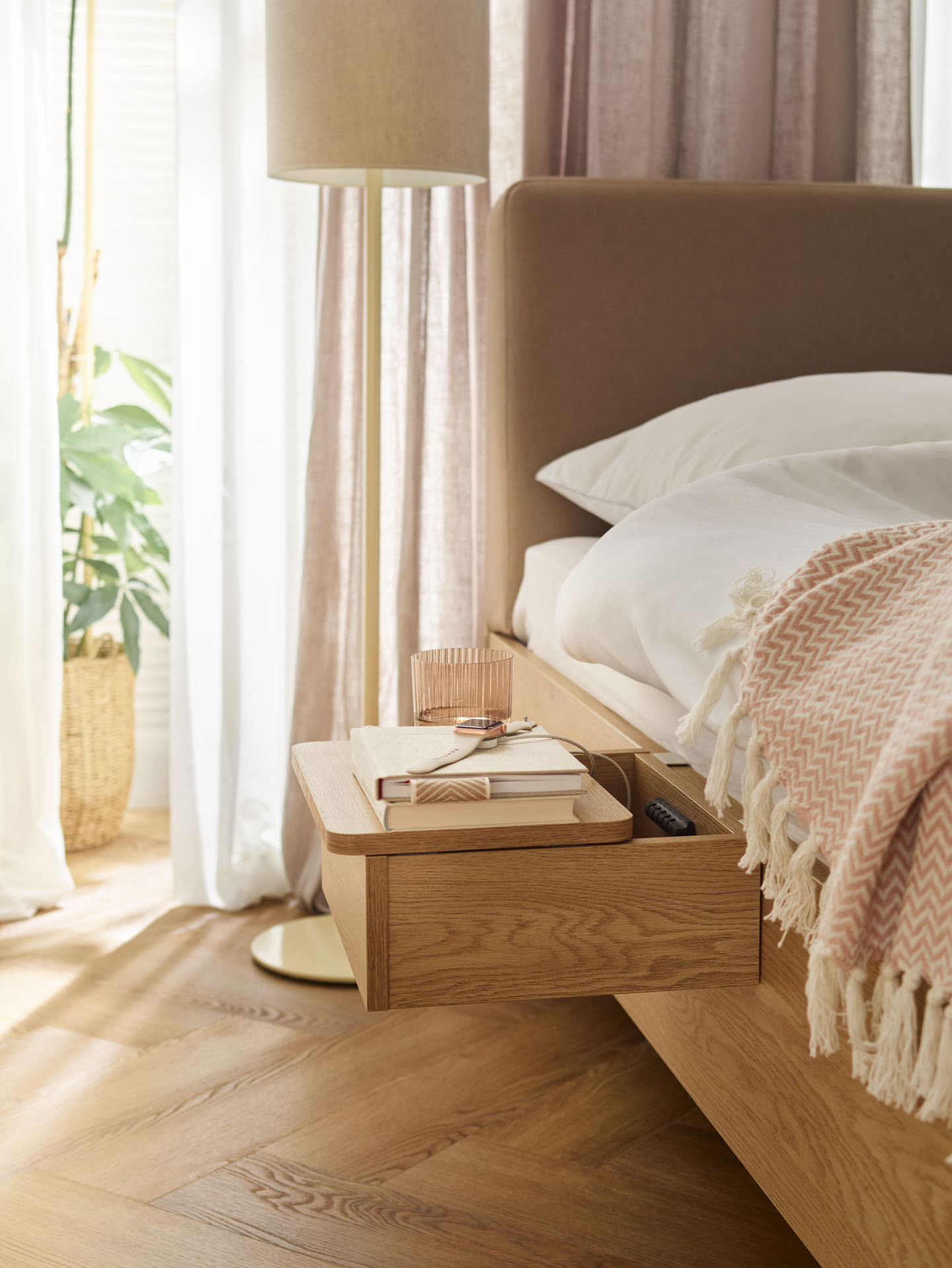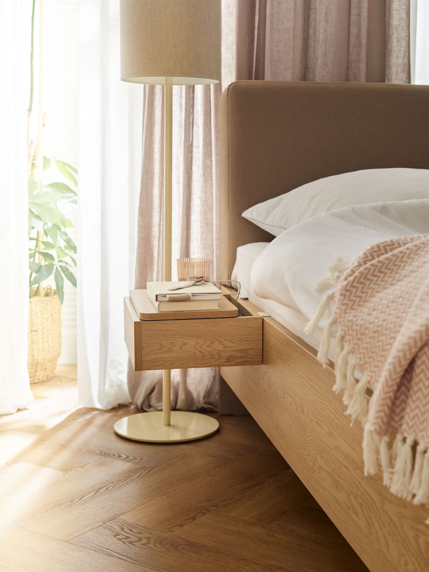 Το Κομοδίνο Wellys χαρακτηρίζεται από τον λιτό, σκανδιναβικό του σχεδιασμό και τη ζεστή αίσθηση του φυσικού ξύλου. Είναι η ιδανική επιλογή για να πλαισιώσει το κρεβάτι σας, προσφέροντας οργάνωση και μια πινελιά σύγχρονης αισθητικής στον χώρο. Τοποθετείται στον σκελετό του κρεβατιού Wellys.