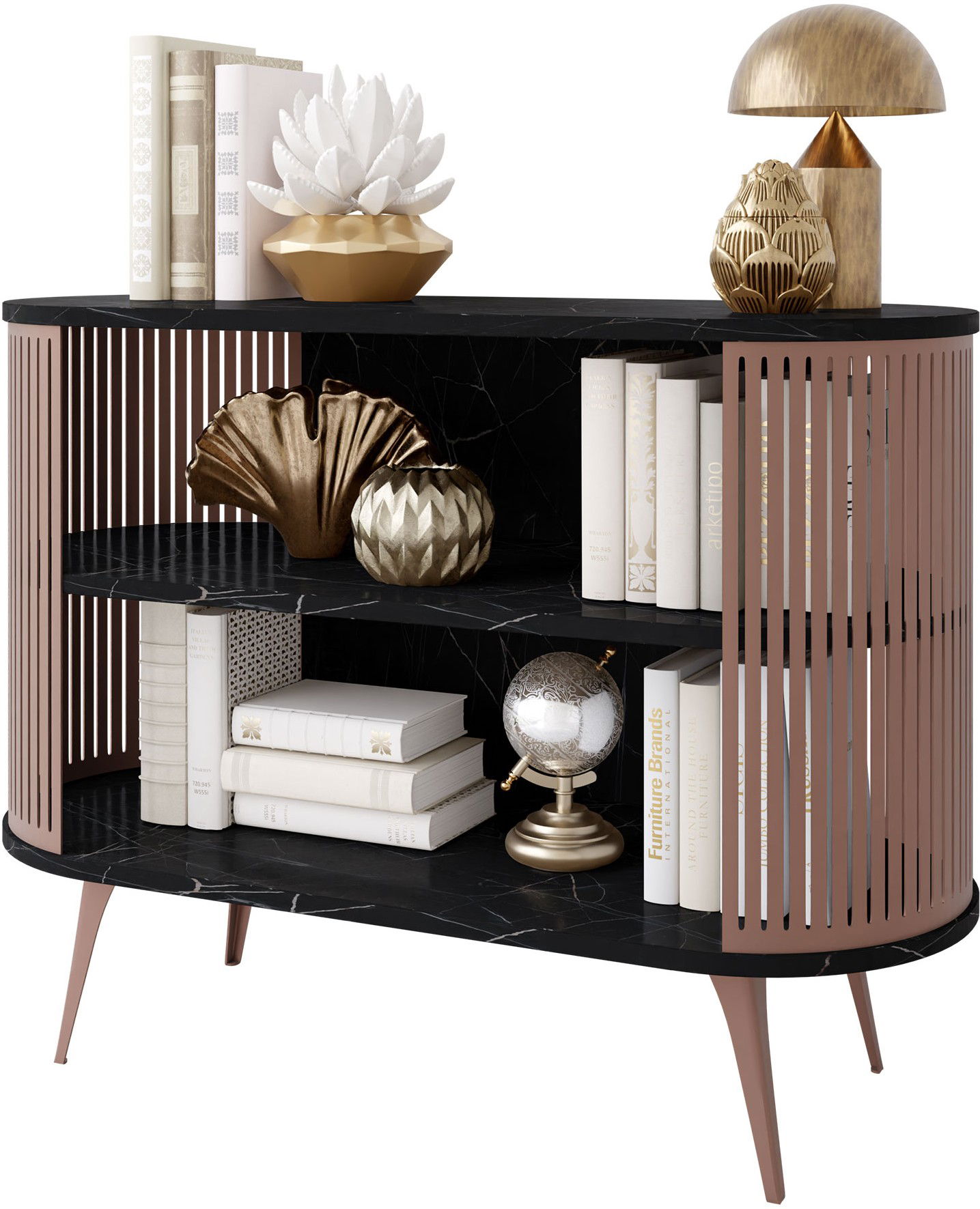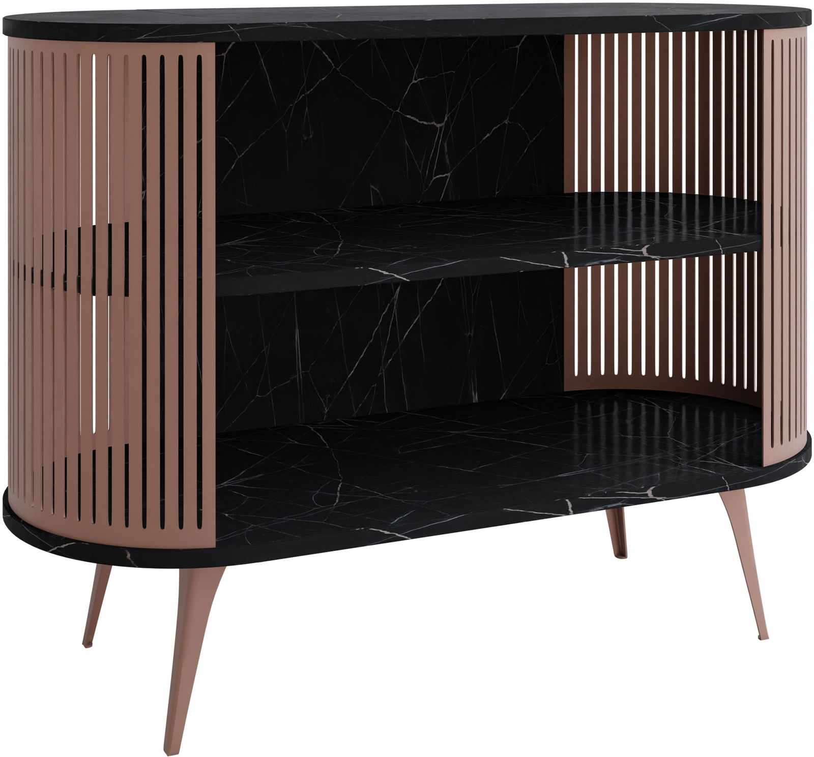 Η κονσόλα Roenni είναι ένα κομψό και λειτουργικό έπιπλο που θα ταιριάξει τέλεια τόσο σε μοντέρνους όσο και σε κλασικούς εσωτερικούς χώρους. Το στρογγυλεμένο σχήμα της προσδίδει μια ανάλαφρη αίσθηση, ενώ τα κάθετα πλαϊνά στοιχεία προσθέτουν μια εκλεπτυσμένη πινελιά και τονίζουν τον μοντέρνο σχεδιασμό.