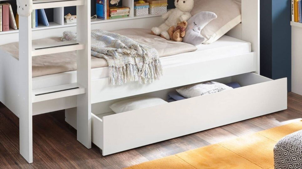 – Με συρτάρι με ροδάκια για αποθήκευση κλινοσκεπασμάτων, παιχνιδιών και άλλων αντικειμένων