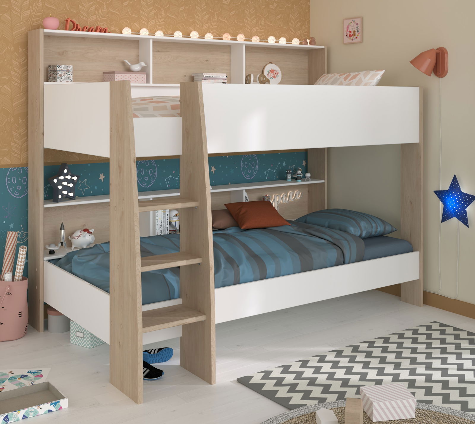 Ένας εύκολος τρόπος για να εξοικονομήσετε χώρο στο παιδικό σας δωμάτιο, είναι να επιλέξετε την κουκέτα Shelter. Τα χρώματα της την καθιστούν κατάλληλη και για τα δύο φύλα αλλά και για μεγαλύτερες ηλικίες παιδιών! Θα δώσει μια πρωτότυπη όψη στο δωμάτιο και θα σας επιτρέψει να διακοσμήσετε το χώρο στα αγαπημένα σας χρώματα. Μπορείτε να το συνδυάσετε με το συρτάρι κουκέτας Shelter για να προσθεσετε αποθηκευτικό χώρο στο κάτω μέρος του κρεβατιού.